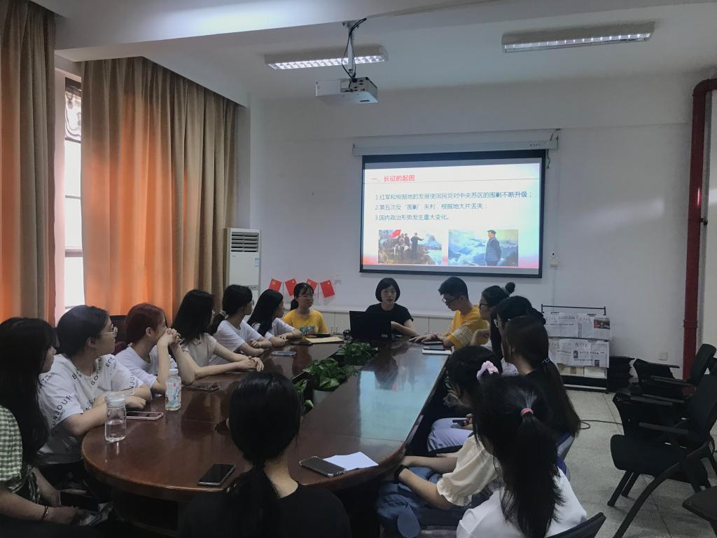 為認真落實黨中央關(guān)于加強黨史學(xué)習(xí)教育的部署,響應(yīng)學(xué)校黨委開展黨史學(xué)習(xí)教育的號召,2021年5月31日,鄭冰老師在行政樓107為習(xí)近平新時代中國特色社會主義思想讀書社夢之隊的成員開展題“紅色經(jīng)典作品中的黨史故事——紅軍不怕遠征難”專題教學(xué)活動,