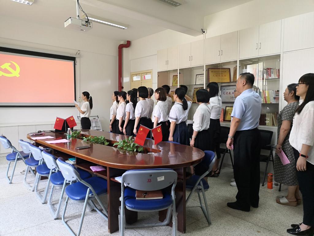 活動一開始,全體黨員投放政治生日貼,回憶起黨組織的培養(yǎng)歷程,增強了榮譽感和歸屬感,更強化了黨員宗旨意識和責任意識。在鮮艷的黨旗面前,魏立娜作為領(lǐng)誓人,帶領(lǐng)支部黨員一起高舉右手,重溫入黨誓詞:“我志愿加入中國共產(chǎn)黨……永不叛黨?!币磺袀ゴ蟮氖聵I(yè)都需要合格的人才來擔當。辦好思想政治理論課關(guān)鍵在教師。思政課教師承載著塑造時代新人的時代重任,肩負立德樹人的使命擔當。隨后黨支部全體黨員教師們重溫思政課教師職業(yè)宣誓。