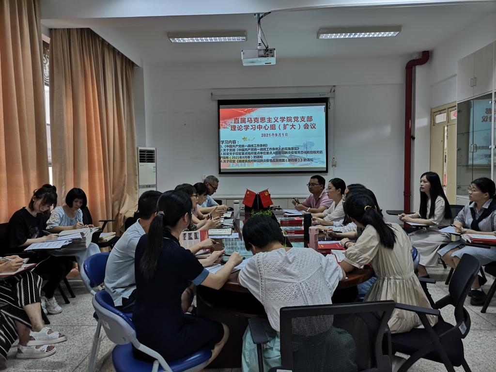 2021年9月1日,直屬馬克思主義學(xué)院黨支部在行政樓107召開(kāi)黨支部理論學(xué)習(xí)中心組(擴(kuò)大)會(huì)議,會(huì)議由黨支部書(shū)記熊美蘭主持。