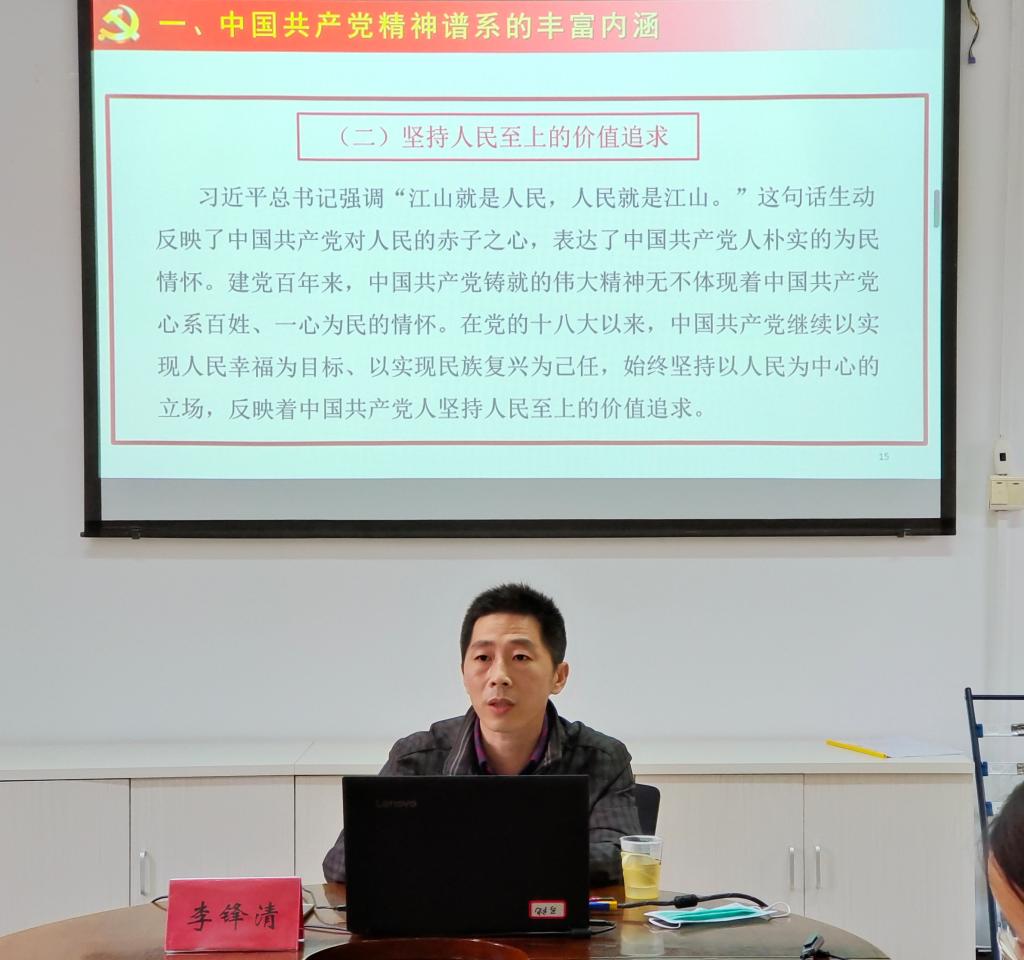 2022年5月12日,直屬馬克思主義學(xué)院黨支部開(kāi)展《中國(guó)共產(chǎn)黨人精神譜系與高校思政課教學(xué)的深度融合》專題講座。講座由來(lái)朋珍副書記主持,福建醫(yī)科大學(xué)馬克思主義學(xué)院概論教研室主任李鋒清副教授主講,支部全體黨員參加。