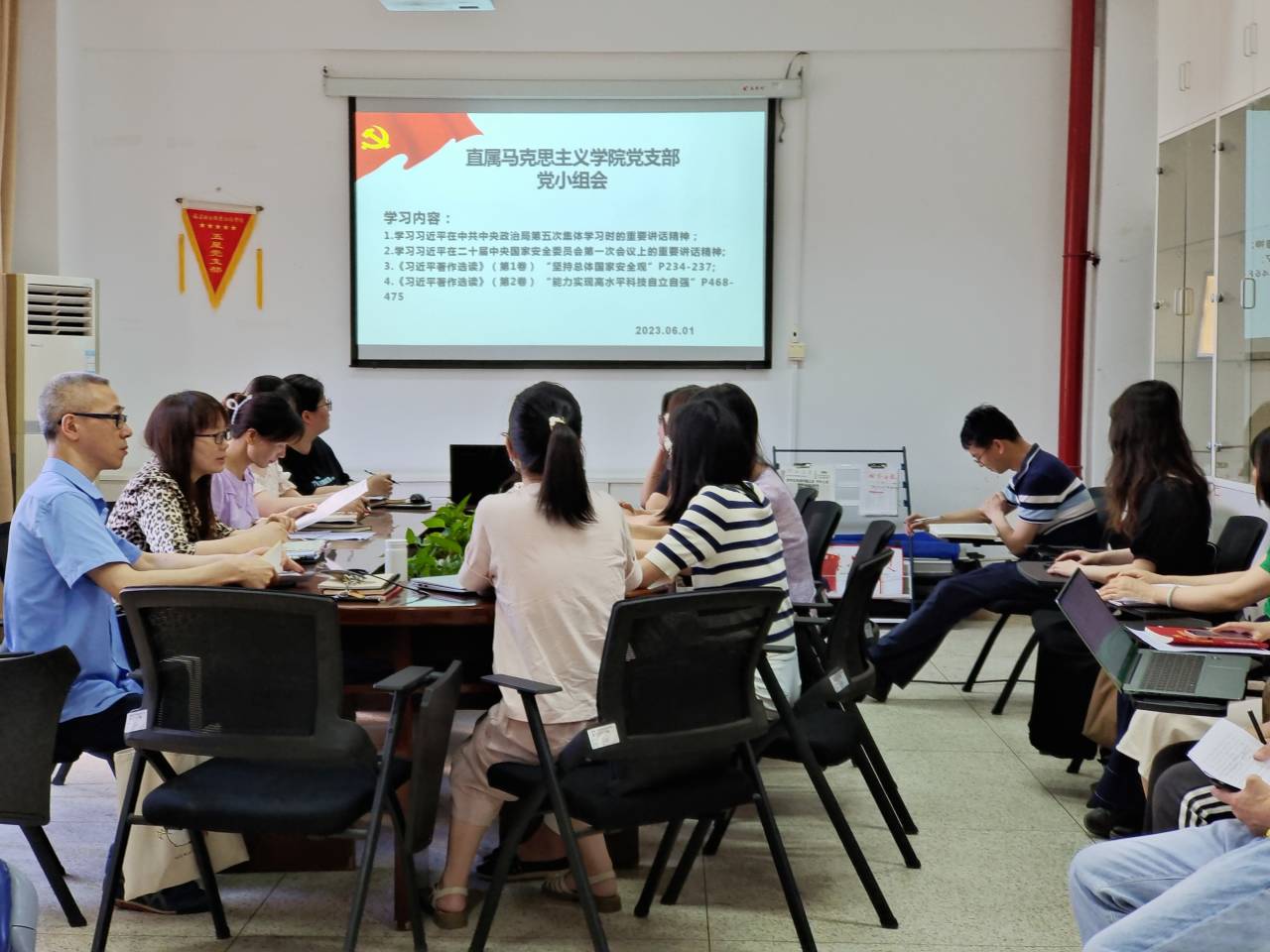2023年6月1日,直屬馬克思主義學(xué)院黨支部在行政樓107會(huì)議室開展黨小組理論學(xué)習(xí)。會(huì)議由黨支部書記熊美蘭主持,支部全體黨員參加。