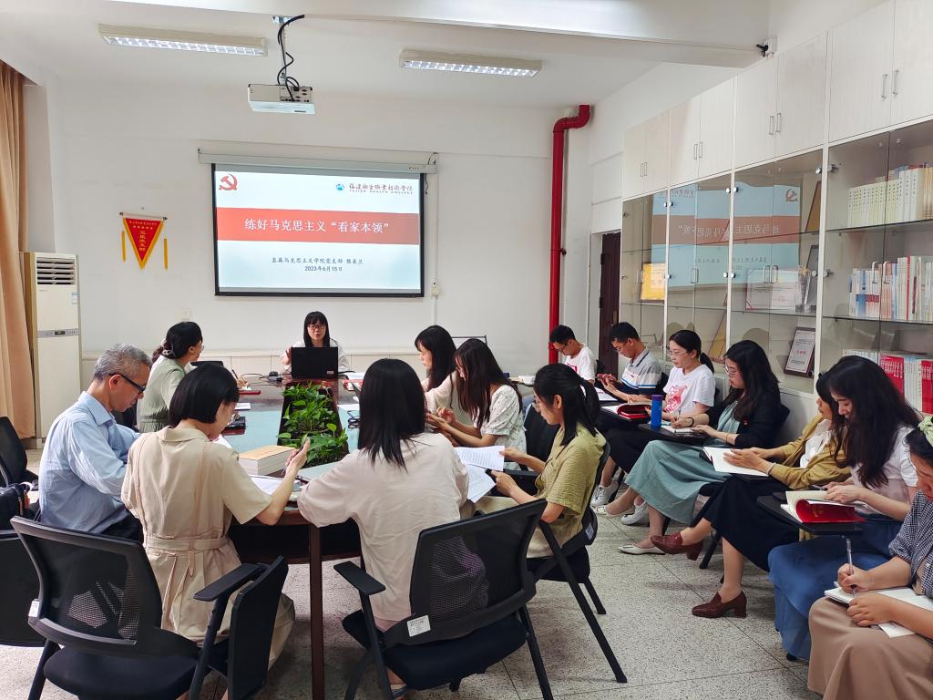2023年6月15日,直屬馬克思主義學(xué)院黨支部書記熊美蘭以《練好馬克思主義“看家本領(lǐng)”》為題,為黨支部全體教師黨員講授專題黨課,校黨委書記曾武祈對(duì)此次黨課開展指導(dǎo)。