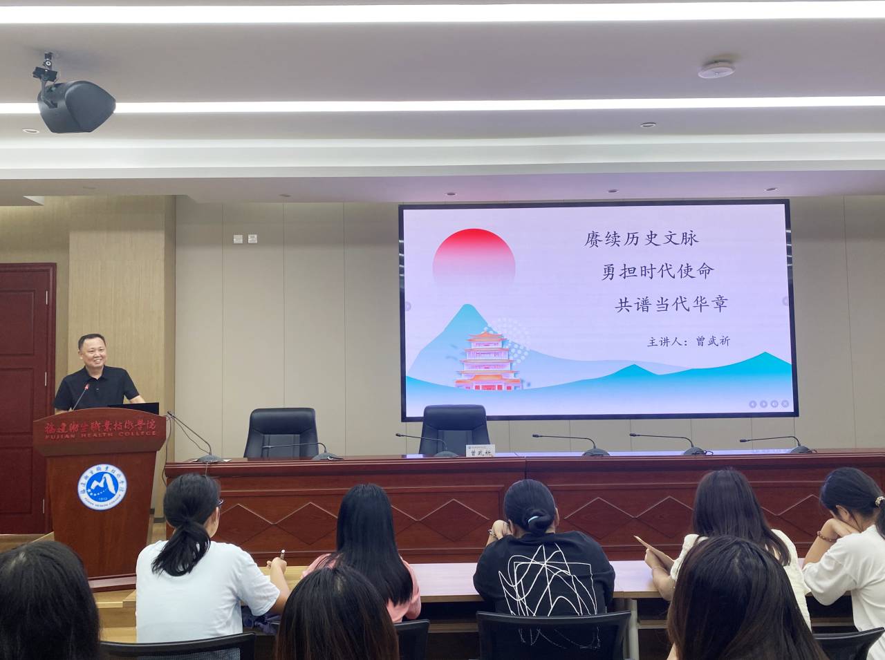 2023年9月14日,校黨委書(shū)記曾武祈在行政樓六樓會(huì)議室為直屬馬克思主義學(xué)院黨支部全體教師黨員作題為“賡續(xù)歷史文脈 勇?lián)鷷r(shí)代使命 共譜當(dāng)代華章”黨課。
