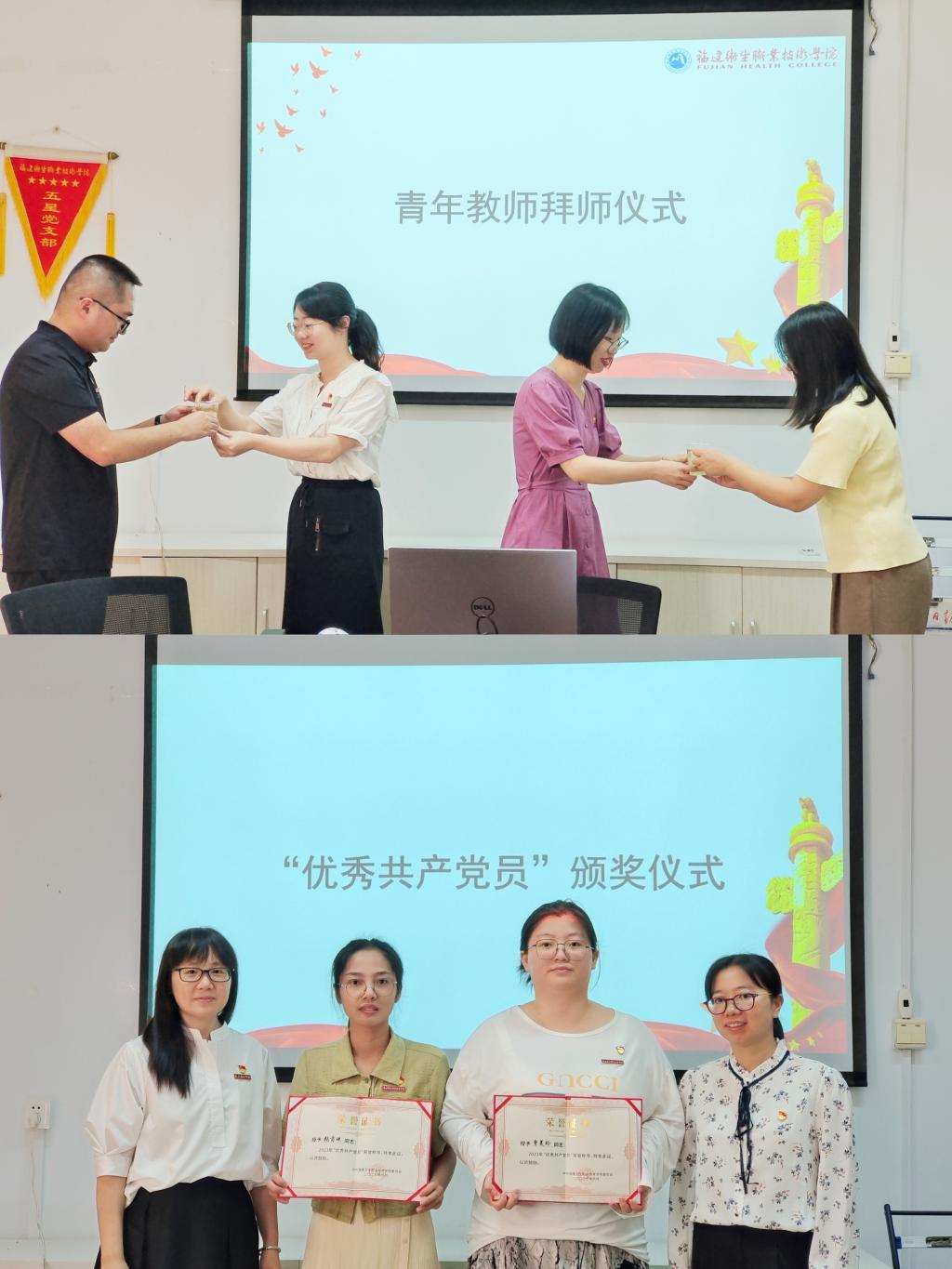 結(jié)合本次主題黨日活動(dòng)主題,直屬馬克思主義學(xué)院黨支部開(kāi)展了慶祝第39個(gè)教師節(jié)活動(dòng),全體黨員教師在黨支部書(shū)記熊美蘭的帶領(lǐng)下,共同立下錚錚誓言,牢記習(xí)近平總書(shū)記殷殷囑托,牢牢扛起光榮使命。為充分發(fā)揮優(yōu)秀骨干教師對(duì)青年教師的傳、幫、帶作用,使青年教師盡快成長(zhǎng),馬院舉行青年教師拜師儀式,鄒亞彤、劉宗永兩位新進(jìn)教師分別向?qū)焸兙床?、拜師。黨支部書(shū)記熊美蘭、副書(shū)記賴(lài)文金分別為獲得2023年“優(yōu)秀共產(chǎn)黨員”的張茵珠、曾美玲兩位同志頒獎(jiǎng),希望受到表彰的同志珍惜榮譽(yù)、發(fā)揚(yáng)成績(jī),爭(zhēng)取更大光榮。榮獲“三育人先進(jìn)工作者”的張茵珠老師作了交流分享,她表示在今后的工作中會(huì)更加積極配合,少點(diǎn)借口、計(jì)較,多點(diǎn)認(rèn)真、用心,力爭(zhēng)取得更好地成績(jī)。