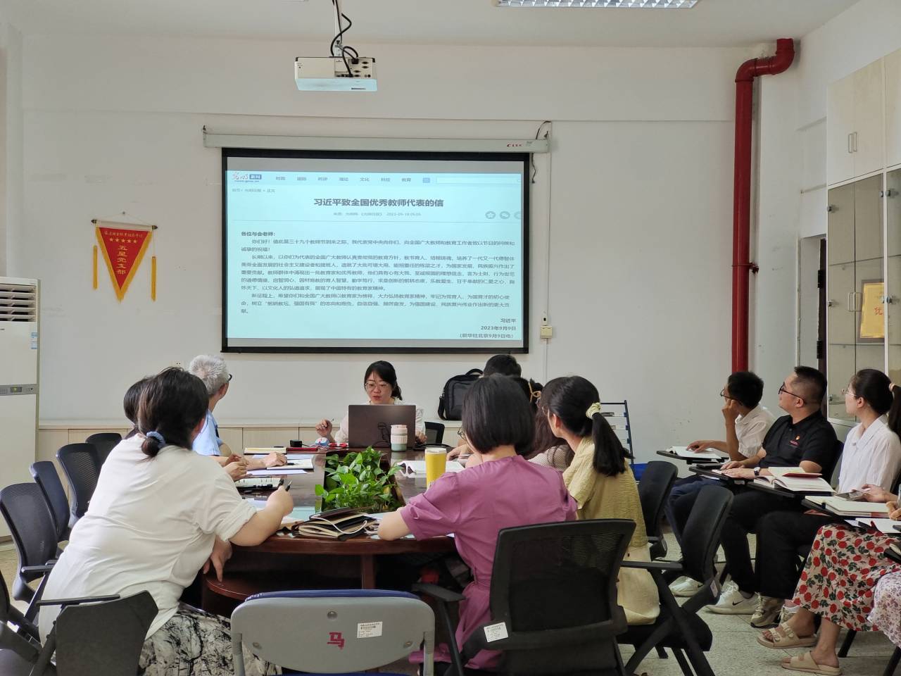為深入學(xué)習(xí)習(xí)近平新時(shí)代中國(guó)特色社會(huì)主義思想,持續(xù)加強(qiáng)師德師風(fēng)建設(shè),引導(dǎo)廣大教師堅(jiān)定理想信念、陶冶道德情操、涵養(yǎng)扎實(shí)學(xué)識(shí)、勤修仁愛(ài)之心,直屬馬克思主義學(xué)院黨支部于9月14日在行政樓107開(kāi)展“躬耕教耘 強(qiáng)國(guó)有我”主題黨日活動(dòng)。