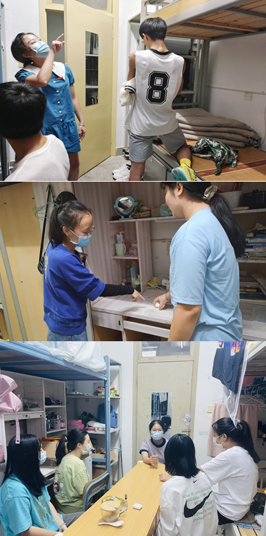 當(dāng)晚,輔導(dǎo)員們?nèi)珕T下到宿舍走訪,查看宿舍衛(wèi)生整理狀況,向同學(xué)們宣傳愛國衛(wèi)生運(yùn)動精神,強(qiáng)調(diào)常態(tài)化疫情防控注意事項(xiàng),并對宿舍違規(guī)電器等安全隱患進(jìn)行排查,關(guān)心同學(xué)們的學(xué)習(xí)生活狀態(tài)。