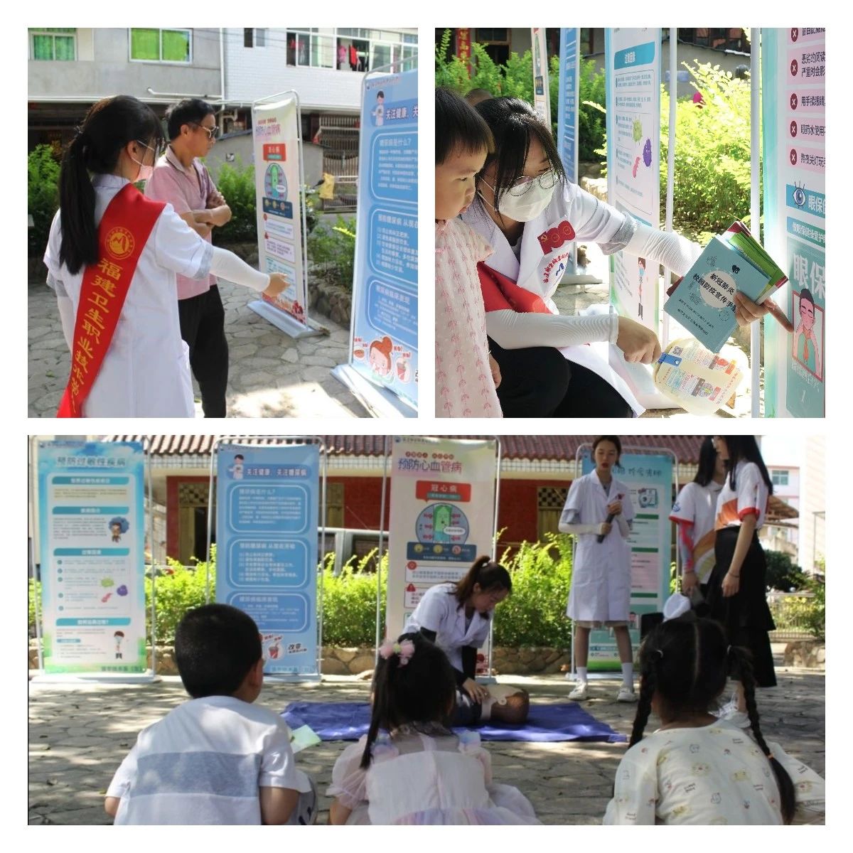 健康宣講:結(jié)合宣傳海報(bào)和圖冊(cè),實(shí)踐隊(duì)向群眾講解科學(xué)護(hù)眼、科學(xué)控糖、心血管疾病預(yù)防及新冠肺炎疫情防控等。借助人體模型,實(shí)踐隊(duì)現(xiàn)場(chǎng)演示和教導(dǎo)心肺復(fù)蘇術(shù)。
