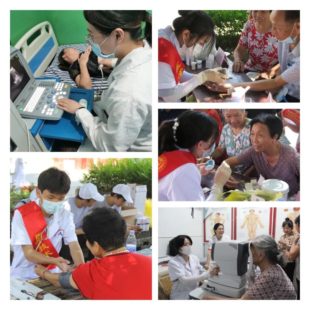 義診:實(shí)踐隊(duì)攜帶專門醫(yī)用設(shè)備,結(jié)合專業(yè)技能特長(zhǎng),為群眾提供量血壓、查血糖、測(cè)膽固醇、眼部檢查、B超檢查等服務(wù),并發(fā)放消毒、防暑、常見藥等醫(yī)療物資。