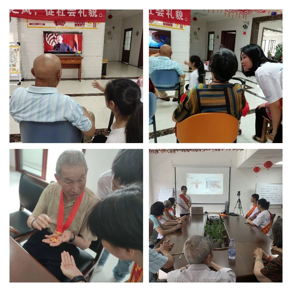 觀看《覺醒年代》,追尋初心之源7月9日上午,夢飛天使志愿服務隊來到浦城縣萬家福托老院,為這里的老人們帶來了一場別開生面的文藝演出,并組織觀看時下紅色熱劇《覺醒年代》,隊員們?yōu)槔先舜┎逯v解。鄭嬋瑤同學生動形象地就七七事變的爆發(fā)以及黨的光輝歷程為老人們宣講。一位獲得50年黨齡紀念章的革命老兵情緒高漲,熱情分享了他當年英勇抗戰(zhàn)的事跡。