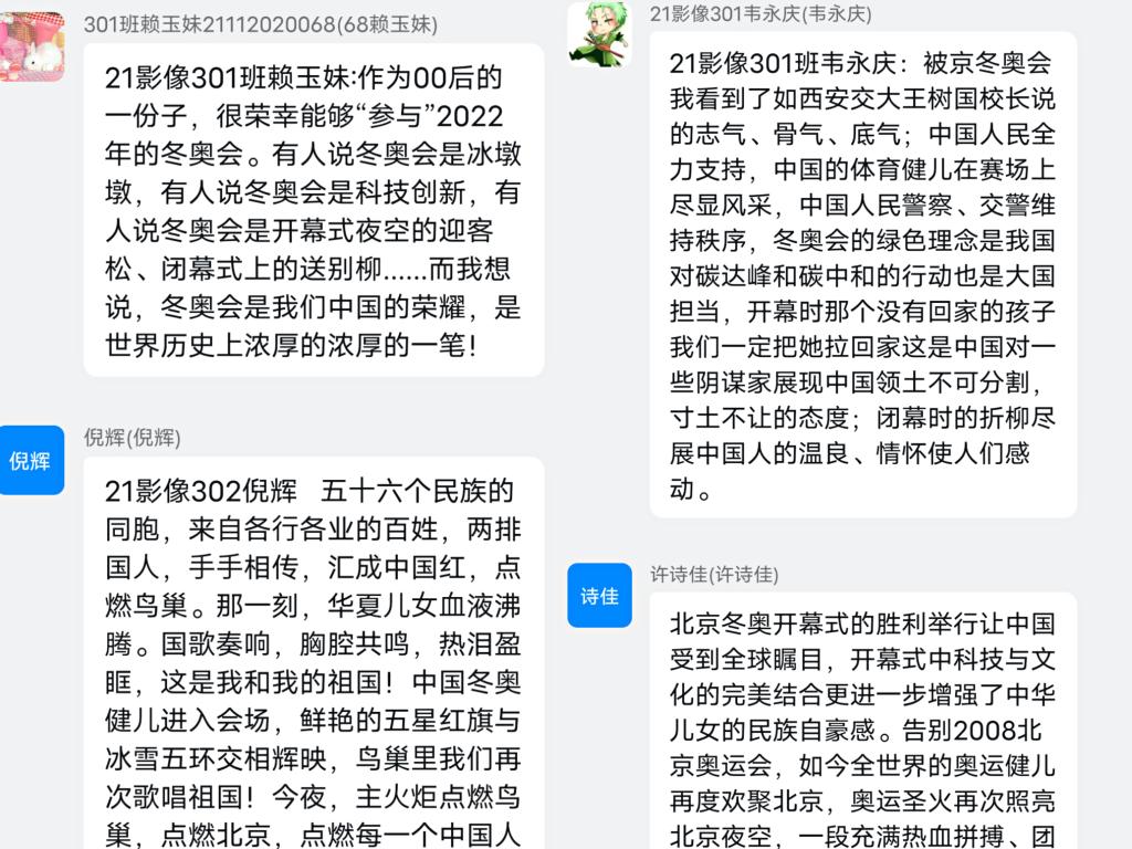 習(xí)近平新時代中國特色社會主義思想讀書社社長、21嬰托301班葉鎵萍感慨:冬奧會帶來的“C位”視角,讓中國青年擁有了“平視世界”的民族自信,深切感悟到“兩個變局”下的人生際遇與時代責(zé)任。中國青年要向奧運(yùn)健兒學(xué)習(xí),彰顯“勇于擔(dān)當(dāng)”色彩,將青春“小我”融入祖國“大我”;中國青年要向冬奧志愿者學(xué)習(xí),彰顯“艱苦奮斗”色彩,以永不懈怠的奮斗姿態(tài)投入攀高峰、立事業(yè)的實踐磨礪。