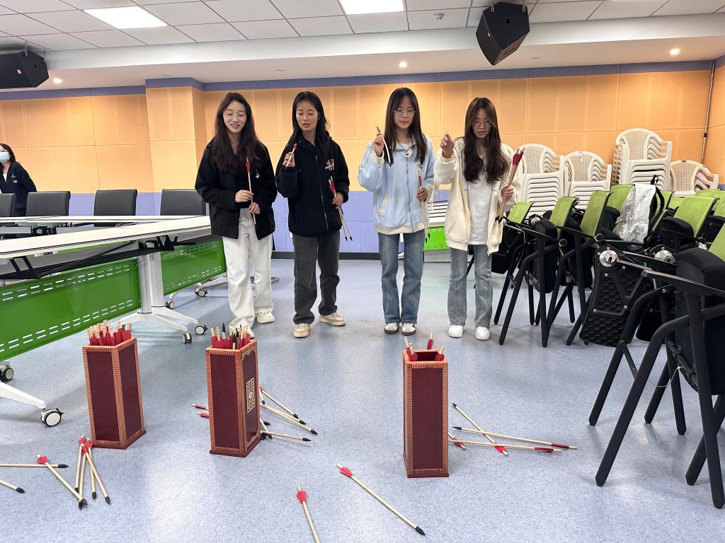 座談會(huì)間隙,同學(xué)們還一起進(jìn)行投壺比賽?;顒?dòng)現(xiàn)場掌聲、笑聲、喝彩聲不斷,熱鬧非凡。