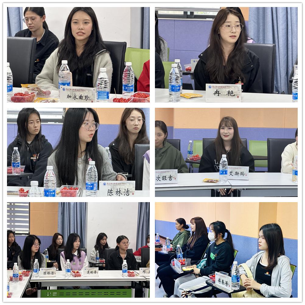 座談會(huì)上,師生發(fā)言踴躍,氣氛熱烈。少數(shù)民族同學(xué)依次進(jìn)行自我介紹,并分享在校的飲食和生活情況,以及自己民族的文化習(xí)俗。大家表示,學(xué)校在師生關(guān)系、文化建設(shè)、專業(yè)教育等方面給予充分的關(guān)懷和支持,尤其是對(duì)學(xué)習(xí)上的困難,提供了有針對(duì)性的幫扶,讓他們更快更好地融入大學(xué)生活,在校園中感受到了溫暖與安全。