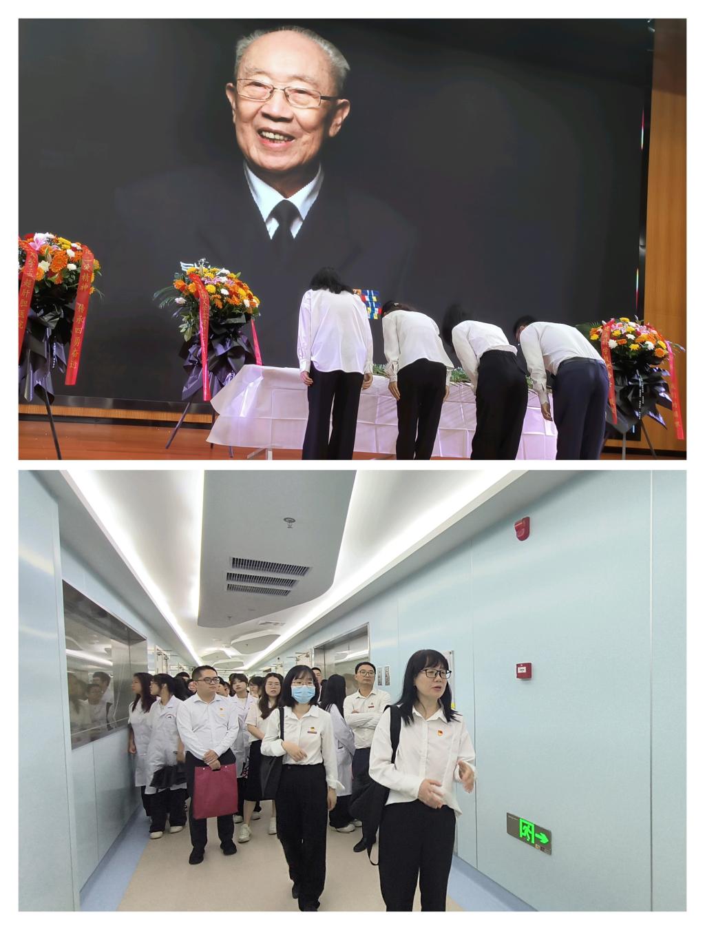 “云山蒼蒼,江水泱泱”,我校師生紛紛排隊向吳孟超院士遺像致敬獻花緬懷追思。一行人來到醫(yī)院科研樓參觀省聯(lián)合創(chuàng)新重點實驗室,深刻感悟到吳孟超院士厚德載醫(yī)、敬畏生命的大醫(yī)情懷。同學們紛紛表示,將爭做科學家精神傳承者,用自身實際行動賦予吳孟超精神新時代的豐富內(nèi)涵。
