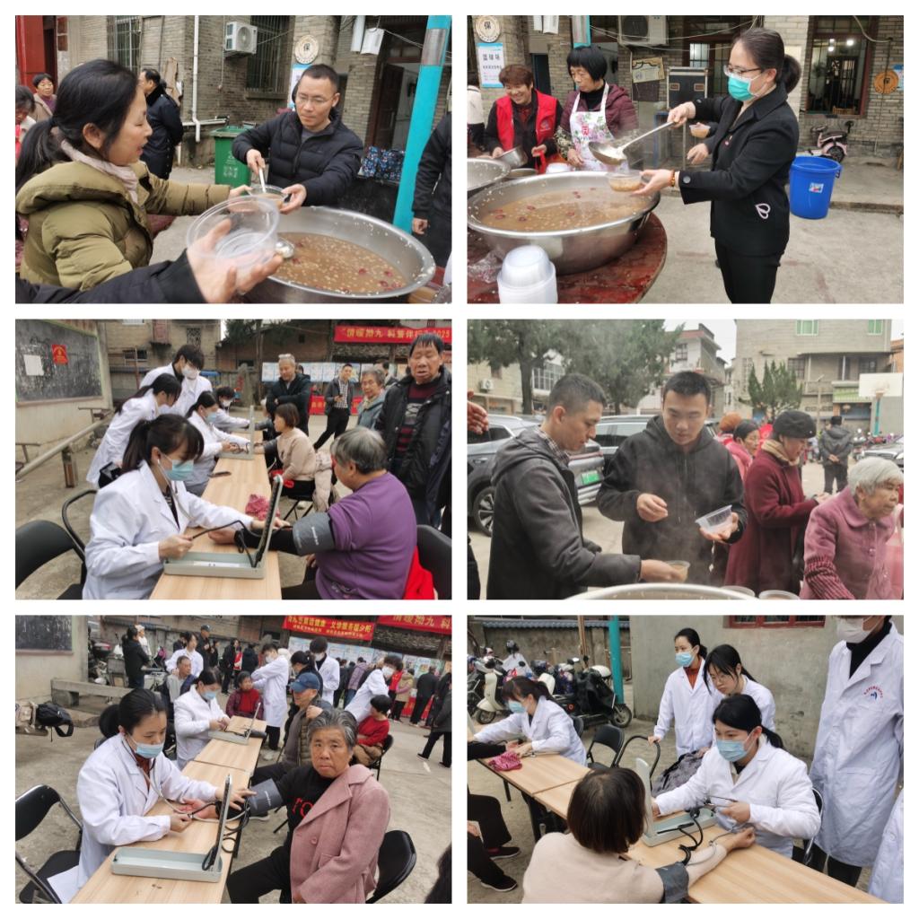 上午7點,黨員志愿者們早早來到現(xiàn)場,迅速投入緊張而有序的準(zhǔn)備工作中。幫忙派粥發(fā)粥的志愿者們,面帶微笑,有條不紊地將熱氣騰騰的福粥盛進(jìn)碗里,再一一遞到居民手中,每遞出一碗,還不忘送上一句誠摯的節(jié)日祝福。另一邊,負(fù)責(zé)支攤義診的醫(yī)學(xué)院黨員教師及學(xué)生早已布置妥當(dāng),耐心地為居民們測量血壓、提供專業(yè)的推拿治療,解答關(guān)于高血壓、日常保健等方面的疑問,詢問居民的日常飲食和睡眠情況,給出合理建議。在一問一答間,傳遞著對居民健康的關(guān)懷。