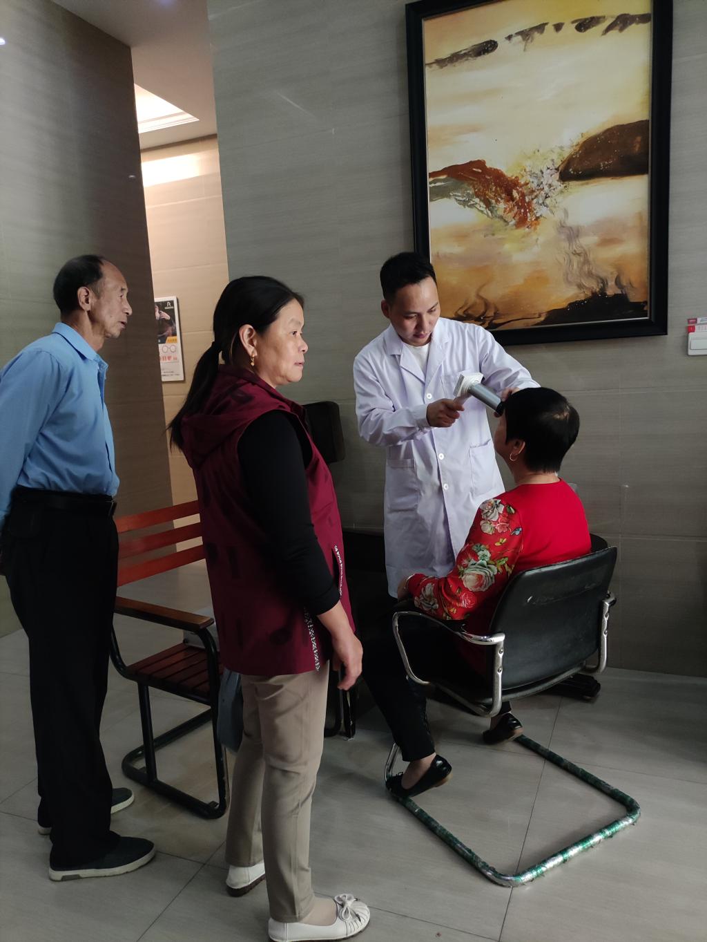 眼視光技術(shù)專業(yè)的師生攜帶專業(yè)設(shè)備,為社區(qū)居民開展眼部健康檢查,重點(diǎn)為老年人篩查年齡相關(guān)性白內(nèi)障和糖尿病視網(wǎng)膜病變,并耐心指導(dǎo)社區(qū)居民學(xué)習(xí)掌握愛眼護(hù)眼的方法。