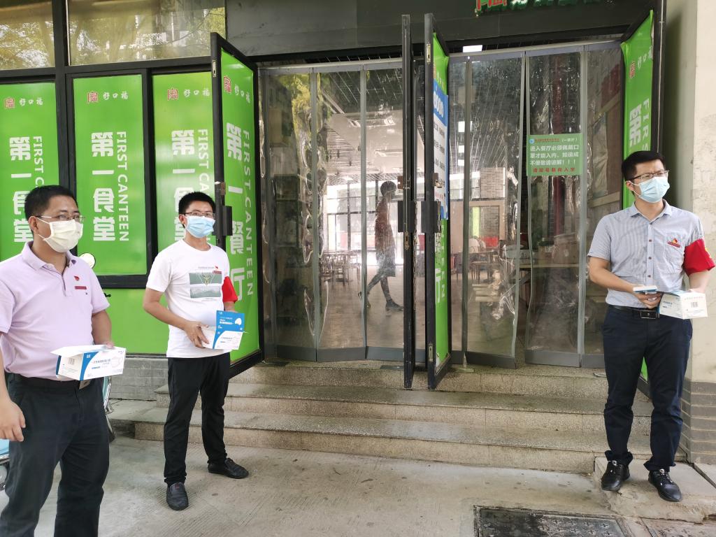 為了進一步提升學生的防疫意識,有效落實學校的疫情防控工作,支部黨員在中午就餐時間到第一餐廳與明湖餐廳,為過往的同學們派發(fā)口罩,開展疫情防控和相關政策宣傳活動,倡導師生及食堂工作人員養(yǎng)成良好的生活習慣,做好個人健康防護工作。