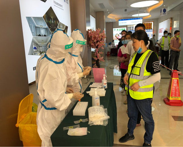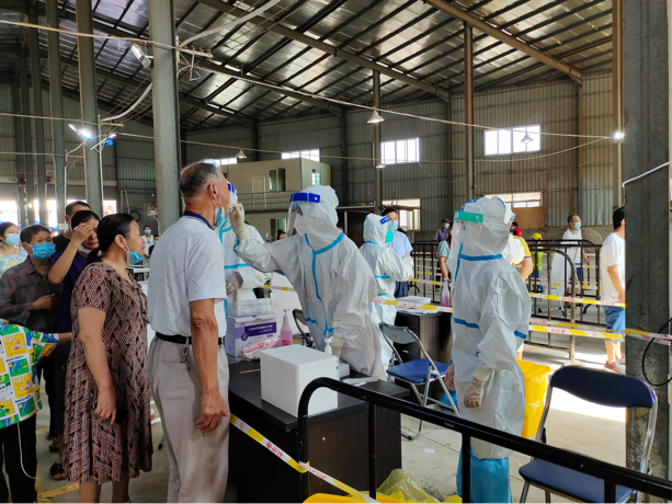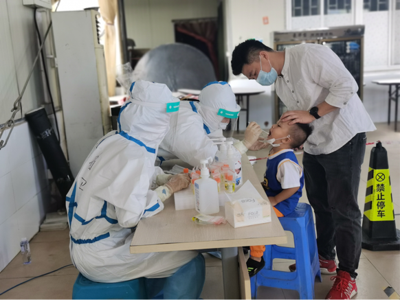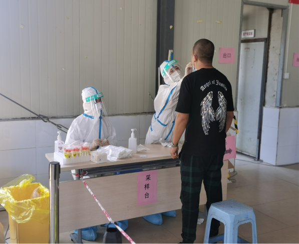 到達(dá)實(shí)戰(zhàn)演練場(chǎng)地后,大家迅速穿好防護(hù)服,分工合作,有條不紊地開(kāi)始核酸檢測(cè)。盡管天氣炎熱,但是隊(duì)員們還是以堅(jiān)強(qiáng)的意志、規(guī)范的操作圓滿(mǎn)完成核酸檢測(cè)任務(wù),為構(gòu)筑疫情防線(xiàn)貢獻(xiàn)了自己的力量。