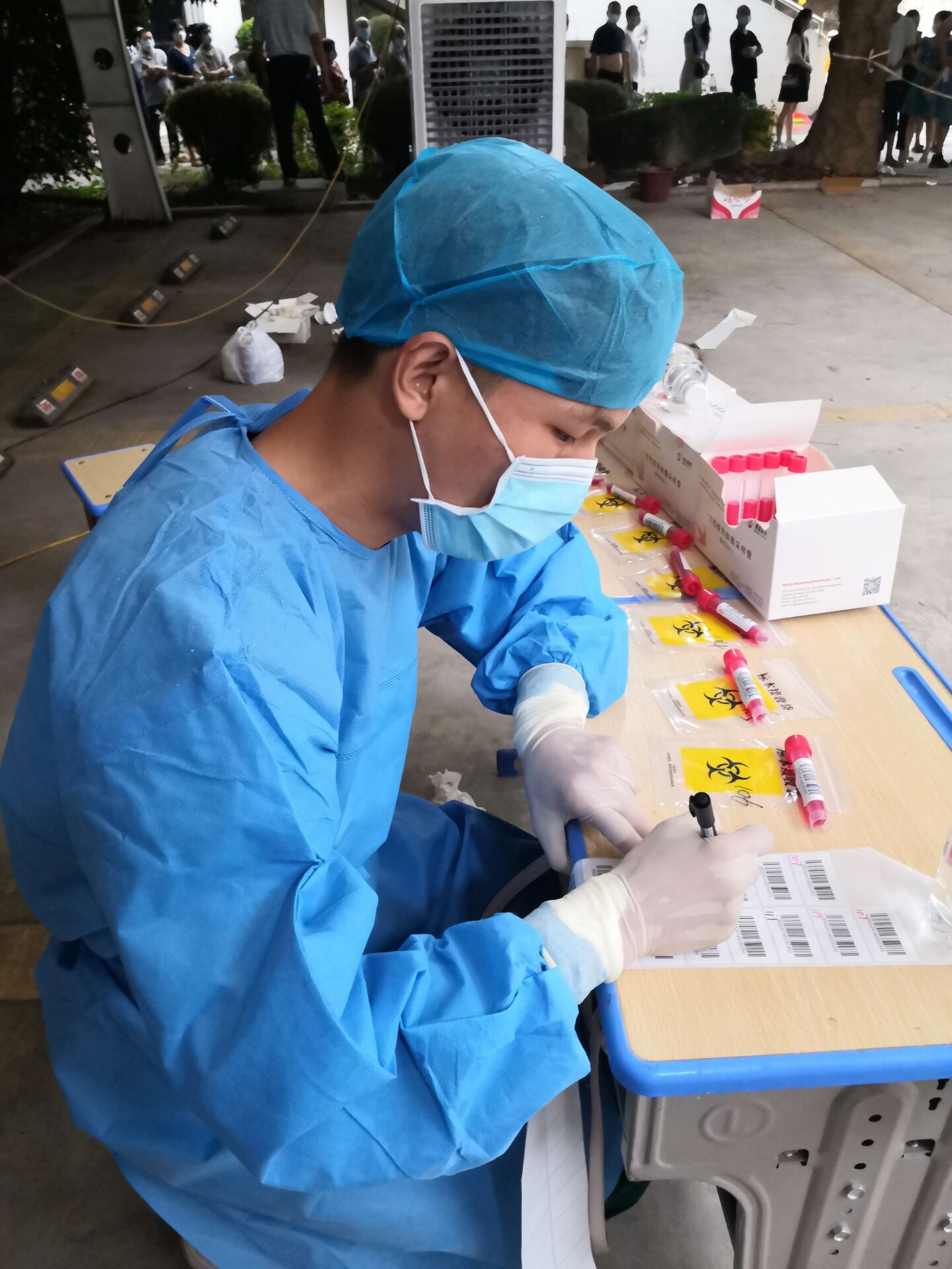 “老師,我請愿去抗疫一線,這是信仰所在,我是一名入黨積極分子就應(yīng)該在危急時刻站出來、頂上去,讓共產(chǎn)黨員的優(yōu)秀品質(zhì)在疫情一線熠熠閃光……”一位略顯靦腆的00后大男孩,在此刻是如此的堅毅鏗鏘。涵江周敦小學(xué)核酸采樣點、宮下社區(qū)核酸采樣點、下林晨社區(qū)核酸采樣點,哪里有需要哪里就是他的下一站。