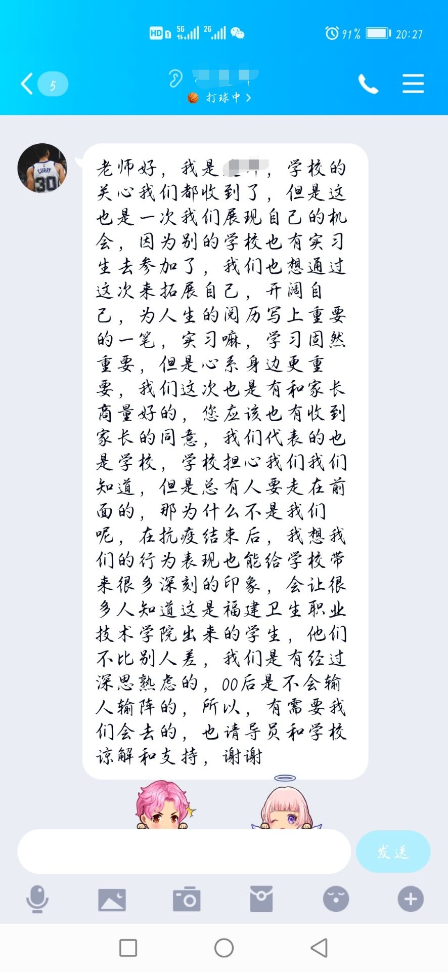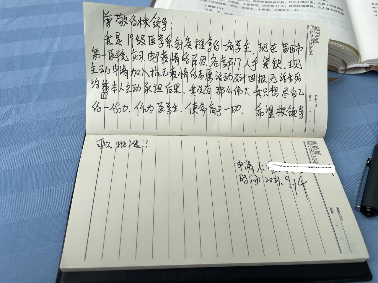 “老師,您好!我是19針推301班陳子萌的家長(zhǎng),我同意孩子支援一線抗疫情……”