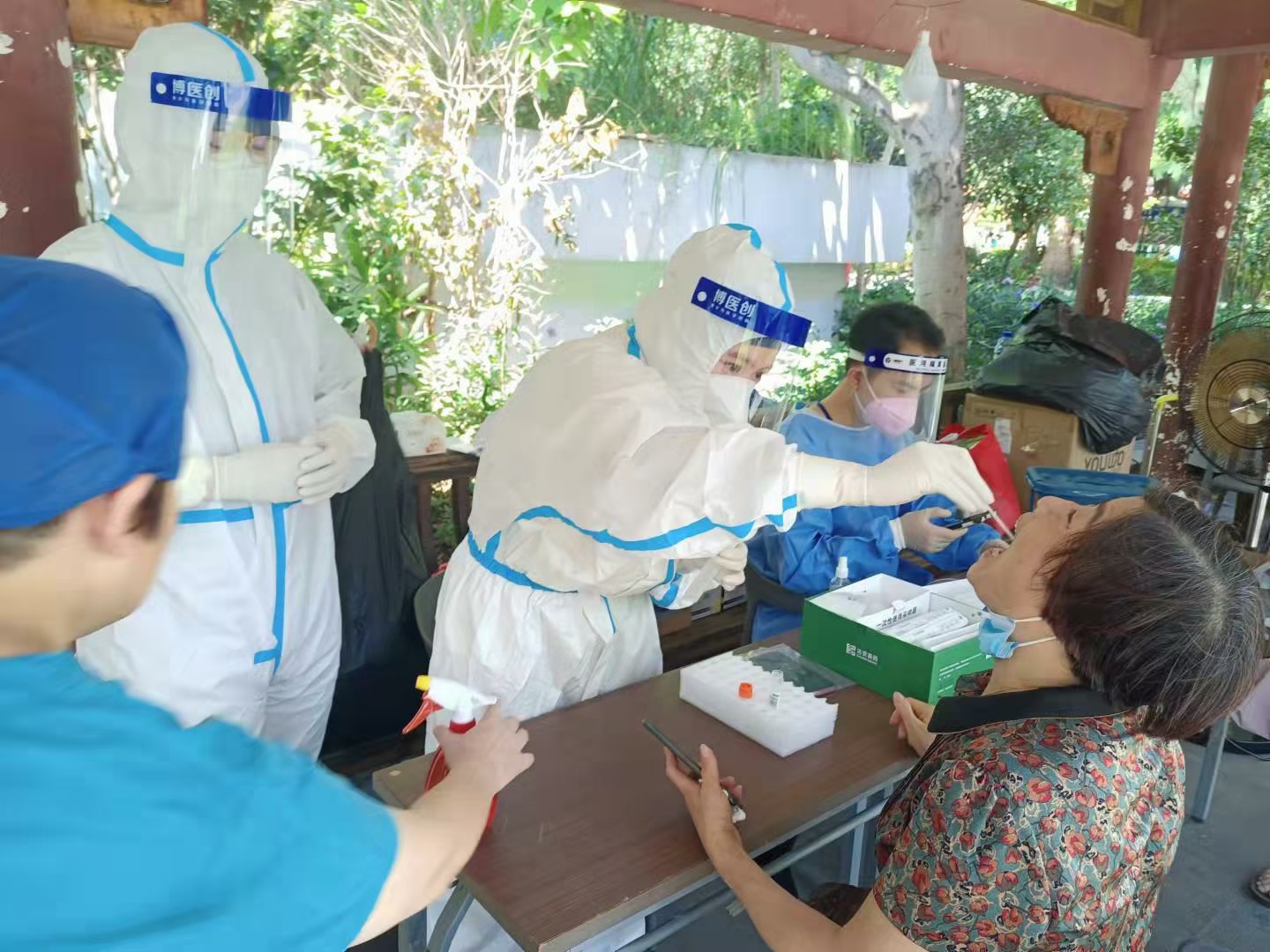 志愿者們獨(dú)當(dāng)一面,為莆田市民做核酸檢測(cè)