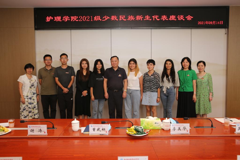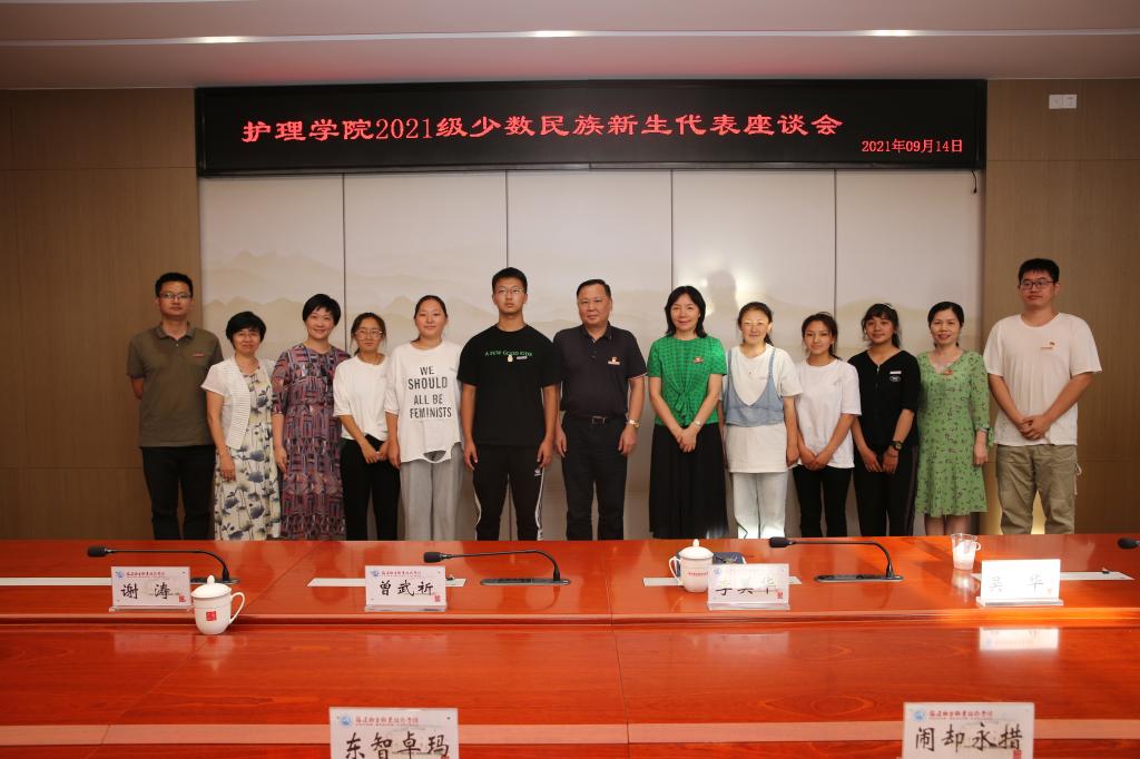 在中秋節(jié)來臨之際,護理學(xué)院在行政樓五層會議室召開2021級維吾爾族、藏族學(xué)生座談會。校黨委書記曾武祈、黨委副書記李美華,組織統(tǒng)戰(zhàn)部、學(xué)生工作部負(fù)責(zé)人以及護理學(xué)院黨政領(lǐng)導(dǎo)參加此次座談會。