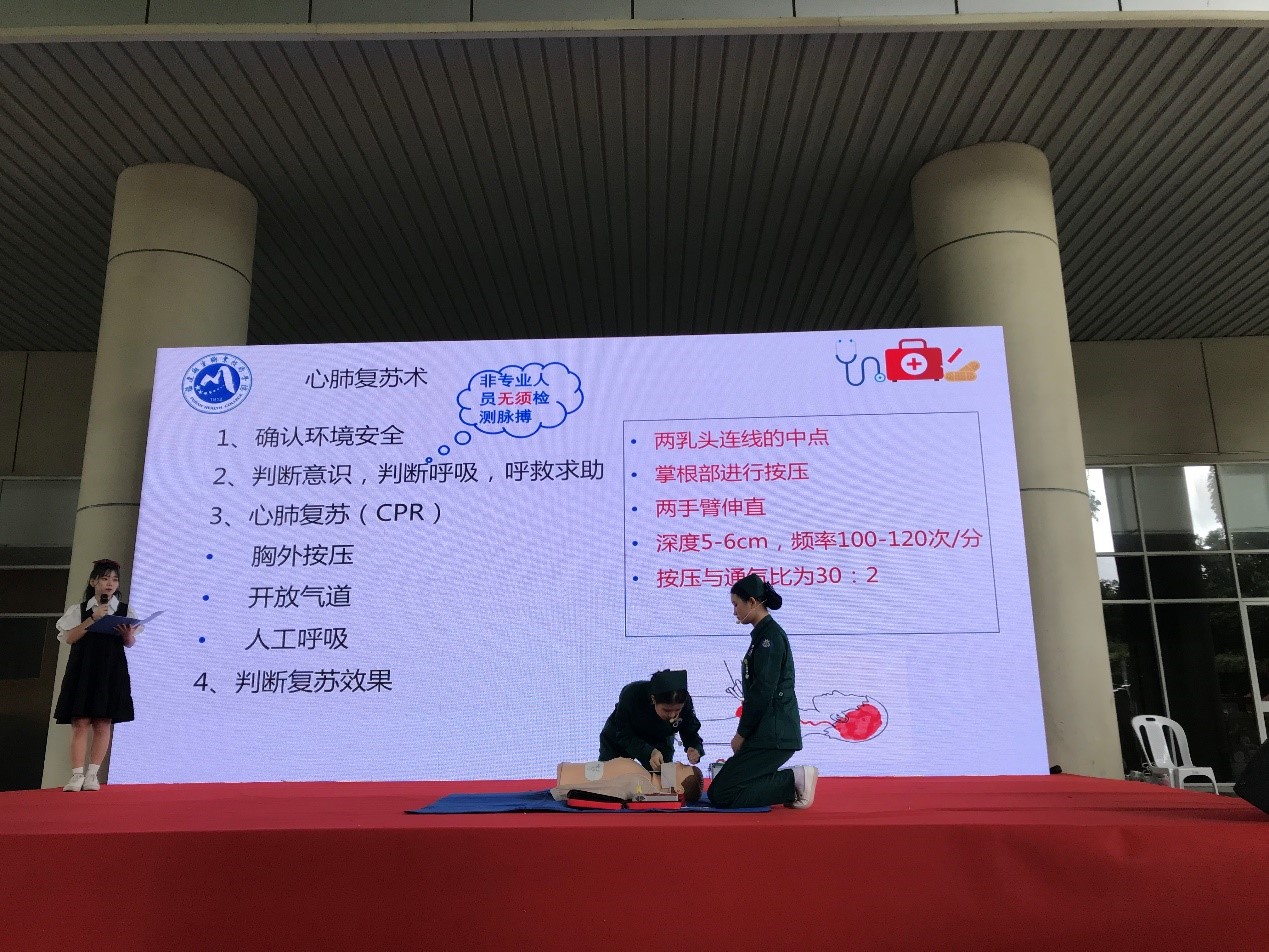 本次科普活動以情景劇的方式呈現(xiàn),在前期準(zhǔn)備中,護理學(xué)院第二黨支部內(nèi)科護理教研室的黨員教師們精心設(shè)計急救情景,并對學(xué)生進行心肺復(fù)蘇、包扎等急救技能的專業(yè)培訓(xùn)。