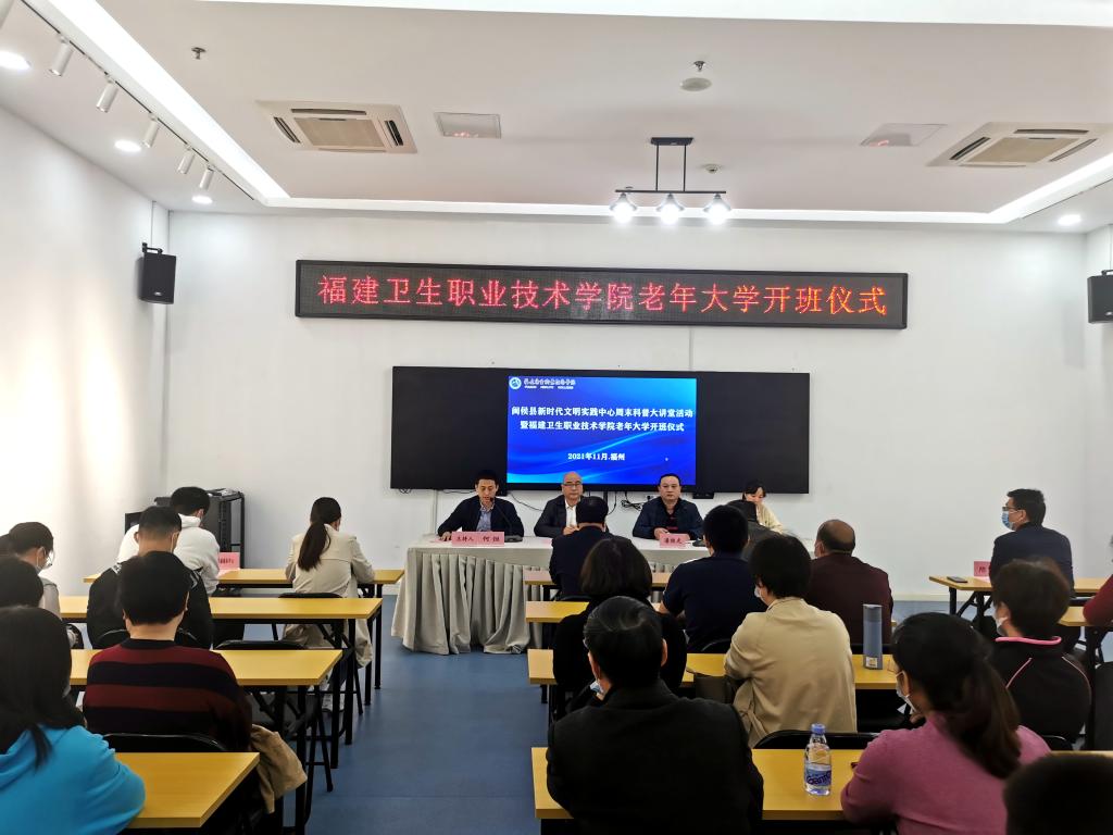 11月20日,福建衛(wèi)生職業(yè)技術(shù)學(xué)院在閩侯縣新時代文明實踐中心舉行首場周末科普大講堂活動暨老年大學(xué)開班儀式。醫(yī)學(xué)系黨總支書記邱滾忠,副主任林國威、陳銘及學(xué)校師生代表參加;閩侯縣科學(xué)技術(shù)協(xié)會主席潘桂光、縣委文明辦副主任葉曉叢、閩侯縣委宣傳部、縣融媒體中心、防震減災(zāi)中心等部門相關(guān)人員受邀出席,共有50余人參加活動?;顒佑衫^續(xù)教育學(xué)院副院長何烜主持。
