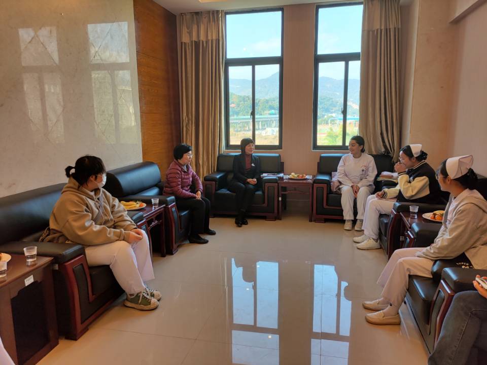 李美華親切詢問了同學(xué)們近期的學(xué)習(xí)生活情況、實(shí)習(xí)安排和困難需求,充分聽取學(xué)生的意見和建議。