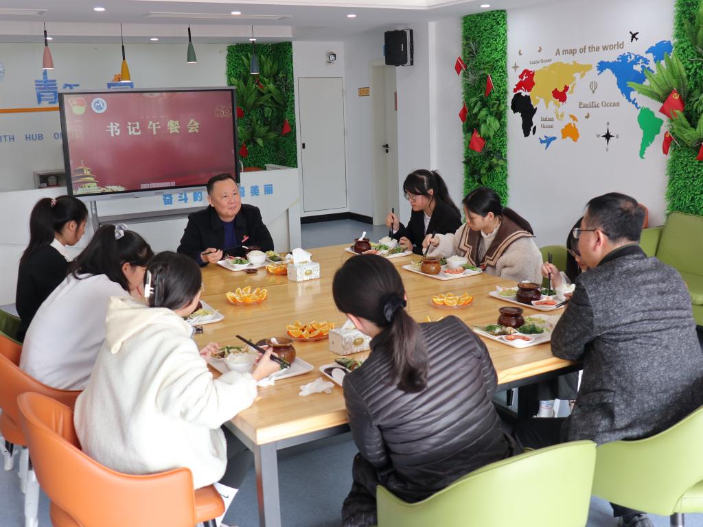 12月22日,校黨委書記曾武祈來到學(xué)校青年之家,與習(xí)近平新時代中國特色社會主義思想讀書社成員進行溝通交流,與聯(lián)系宿舍的同學(xué)進行溫馨午餐會。