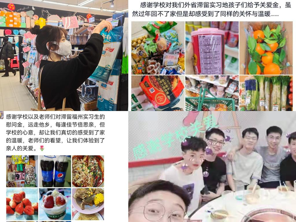 為讓堅(jiān)守崗位的實(shí)習(xí)生過一個(gè)平安祥和的春節(jié),學(xué)校為留閩實(shí)習(xí)的省外生源學(xué)生211人,發(fā)放每人500元的春節(jié)慰問金,讓暫時(shí)難以歸鄉(xiāng)的他們,在春運(yùn)繁忙、年味漸濃的時(shí)間里,感受到學(xué)校別樣的溫情。學(xué)生們紛紛表示,在萬家團(tuán)圓的節(jié)日里收到學(xué)校的關(guān)懷與溫暖,感到非常貼心。
