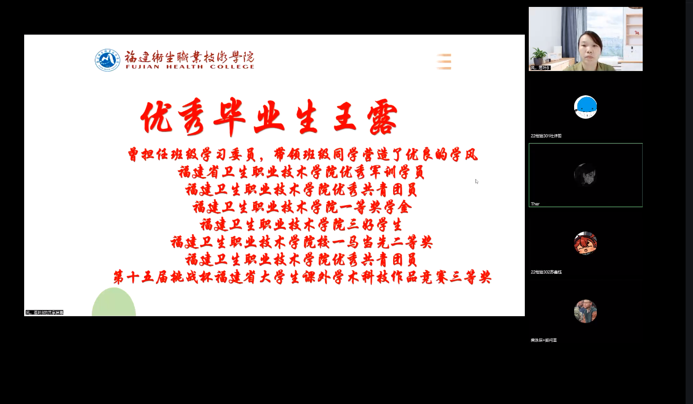 三位畢業(yè)生黨員在校期間表現(xiàn)優(yōu)異,陸蘭梅曾任系學(xué)生會(huì)權(quán)益部負(fù)責(zé)人、班級(jí)生活委員,多次獲得校二等獎(jiǎng)學(xué)金、學(xué)生工作積極分子等榮譽(yù);王露曾擔(dān)任班級(jí)學(xué)習(xí)委員,在校期間多次獲校一等獎(jiǎng)學(xué)金、“三好學(xué)生”、?!耙获R當(dāng)先”二等獎(jiǎng)、第十五屆挑戰(zhàn)杯福建省大學(xué)生課外學(xué)術(shù)科技作品競(jìng)賽三等獎(jiǎng)、優(yōu)秀畢業(yè)生等榮譽(yù);溫?zé)槼稍鴵?dān)任系學(xué)生會(huì)學(xué)習(xí)部副部長(zhǎng)、班級(jí)學(xué)習(xí)委員,獲得“三好學(xué)生”、校特等獎(jiǎng)學(xué)金、“共抗疫情,愛(ài)國(guó)力行”比賽一等獎(jiǎng)、優(yōu)秀畢業(yè)生等榮譽(yù)。