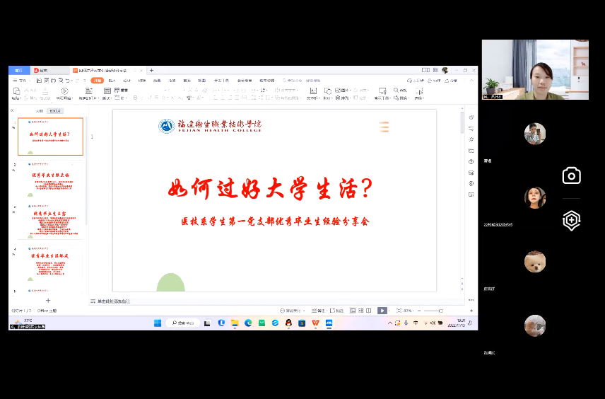 為幫助2022級(jí)學(xué)弟學(xué)妹緩解疫情期間上網(wǎng)課的迷茫和焦慮情緒,11月13日,醫(yī)學(xué)技術(shù)系學(xué)生第一黨支部組織畢業(yè)生黨員陸蘭梅、王露和溫?zé)槼删€上開(kāi)展“如何過(guò)好大學(xué)生活”主題經(jīng)驗(yàn)分享會(huì)。