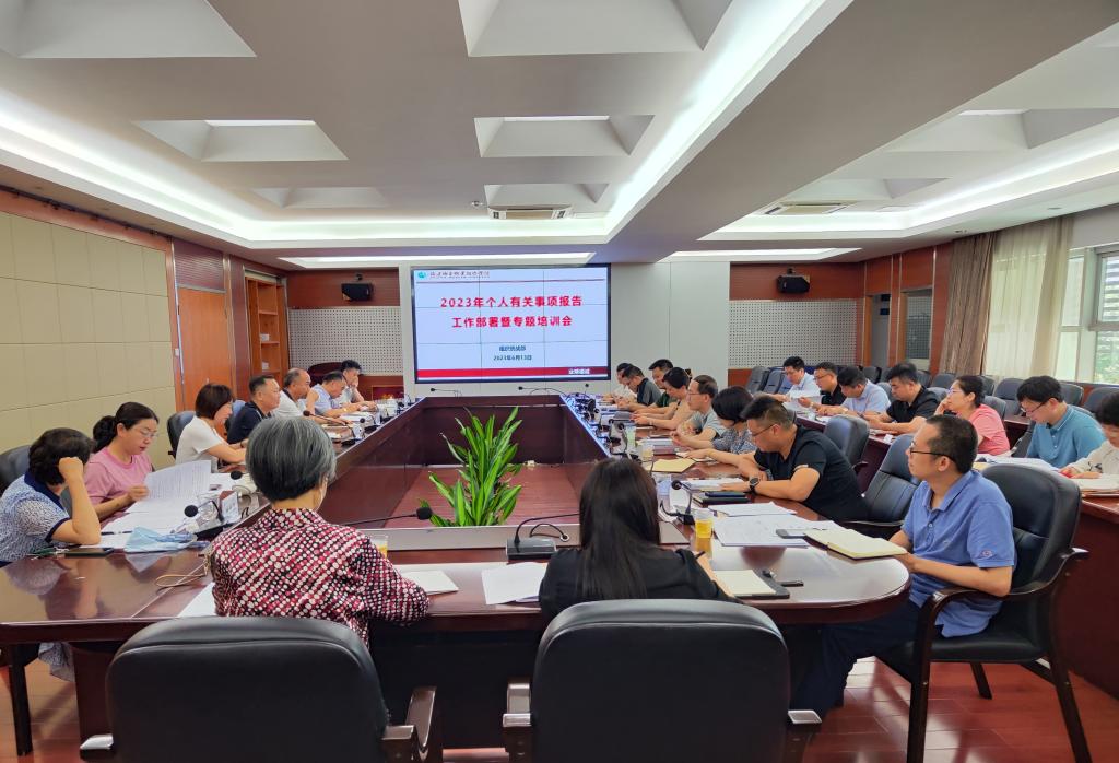 為進一步做好2023年個人有關(guān)事項填報工作,貫徹落實省委組織部、省委教育工委相關(guān)工作要求,6月13日上午,我校召開領(lǐng)導(dǎo)干部個人有關(guān)事項填報工作部署暨專題培訓(xùn)會,會議由黨委副書記李美華主持,副處級以上領(lǐng)導(dǎo)干部共27人參加培訓(xùn)。