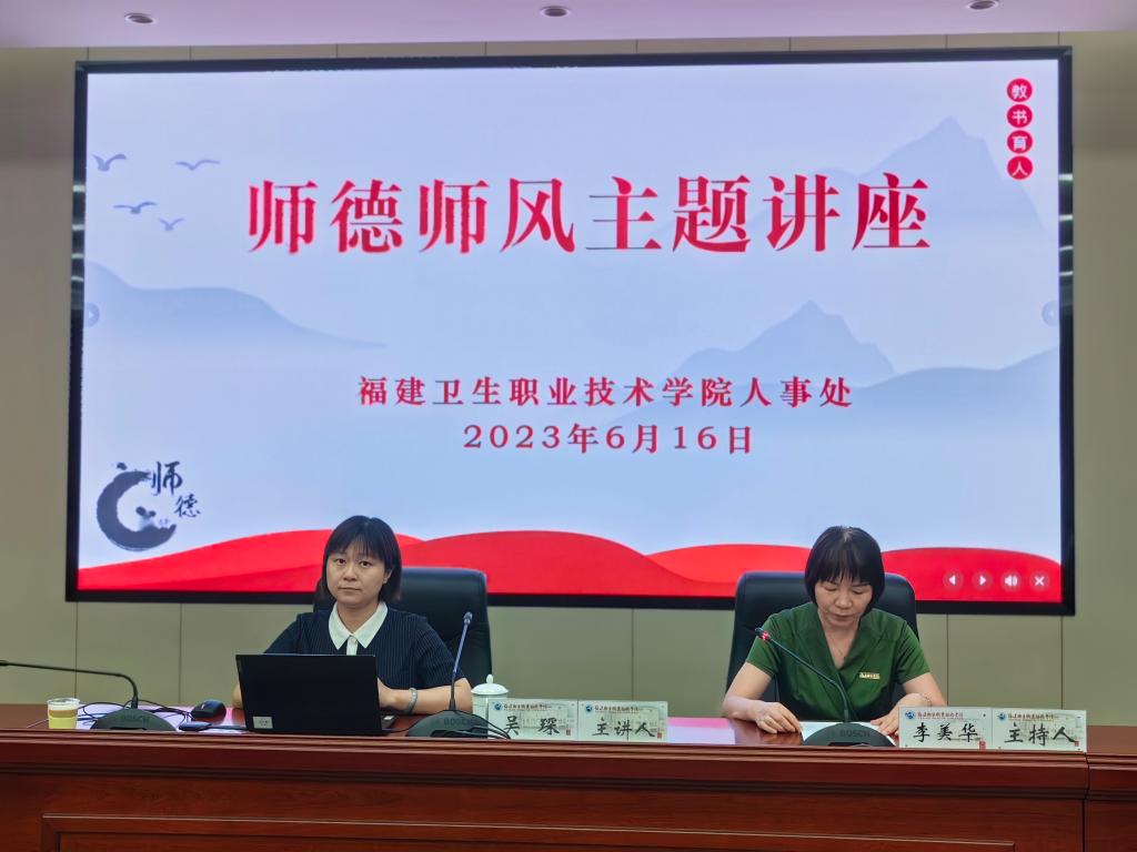 為貫徹落實教育部師德師風(fēng)建設(shè)工作推進暨師德集中學(xué)習(xí)教育啟動部署會的要求,推進我校教師師德師風(fēng)建設(shè),規(guī)范教師職業(yè)行為,促進教師素質(zhì)提升,2023年6月16日,我校邀請福建工程學(xué)院副院長吳琛教授,為新進教師及中青年教師代表作師德師風(fēng)主題講座,講座由黨委副書記李美華主持。