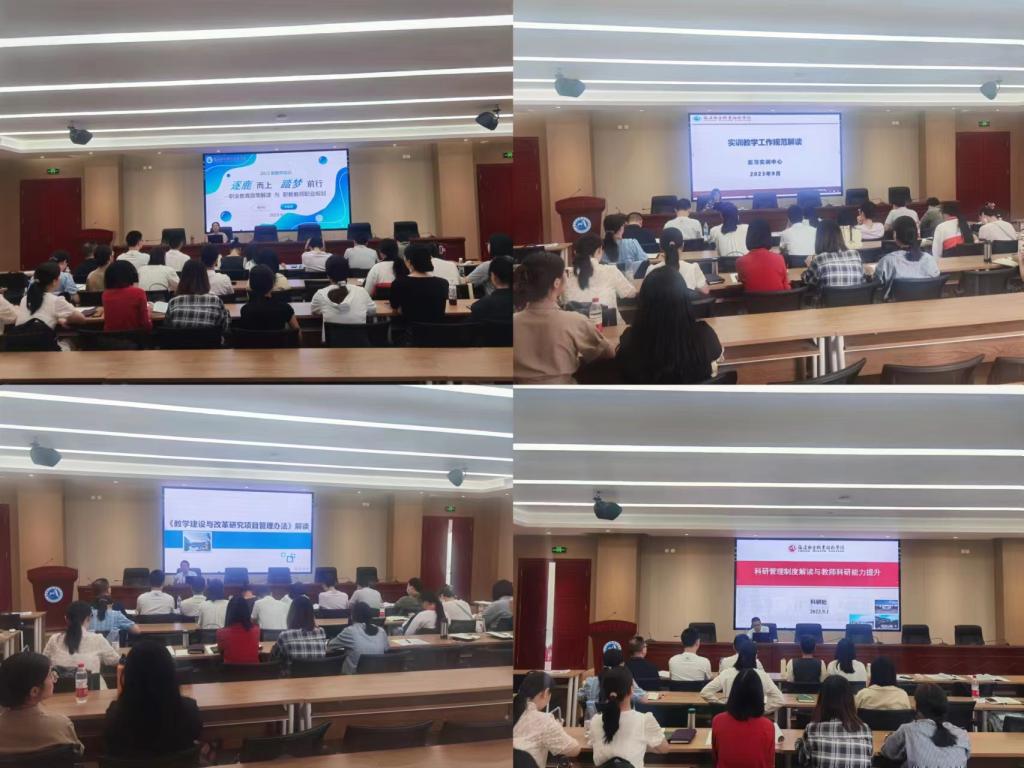 9月1日上午,學(xué)校教務(wù)處、實訓(xùn)實訓(xùn)中心、科研處相關(guān)負(fù)責(zé)人則針對職業(yè)教育政策、教學(xué)常規(guī)、教學(xué)管理、實訓(xùn)教學(xué)與科研制度等相關(guān)文件進行解讀。他們以豐富的教學(xué)經(jīng)驗、管理經(jīng)驗,對職業(yè)教育相關(guān)政策進行深入淺出的講解,分享寶貴的經(jīng)驗,提出誠懇的建議,為我校新入職教職工的職業(yè)發(fā)展提供有力支持和幫助。