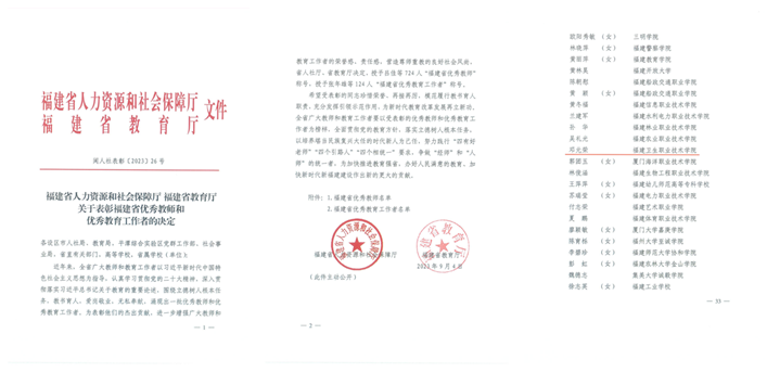 近日,福建省人社廳、福建省教育廳公布《關(guān)于表彰福建省優(yōu)秀教師和優(yōu)秀教育工作者的決定》,我校醫(yī)學(xué)院鄧元榮老師榮獲“福建省優(yōu)秀教師”榮譽(yù)稱號。