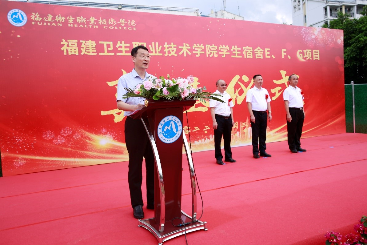 福建建工集團(tuán)有限責(zé)任公司總經(jīng)理助理、福建七建集團(tuán)有限公司黨委書記、董事長賴錦昌代表承建單位,福建省建筑設(shè)計(jì)研究院有限公司黨委書記、董事長林衛(wèi)東代表全咨服務(wù)單位先后致賀詞,簡要介紹了公司情況,表示將精心組織、精誠合作、嚴(yán)密施工,高標(biāo)準(zhǔn)、高效率、高質(zhì)量地完成項(xiàng)目建設(shè),全力以赴將該項(xiàng)目打造成為學(xué)校滿意、全校師生教職工放心的安全、環(huán)保、優(yōu)質(zhì)的精品工程。