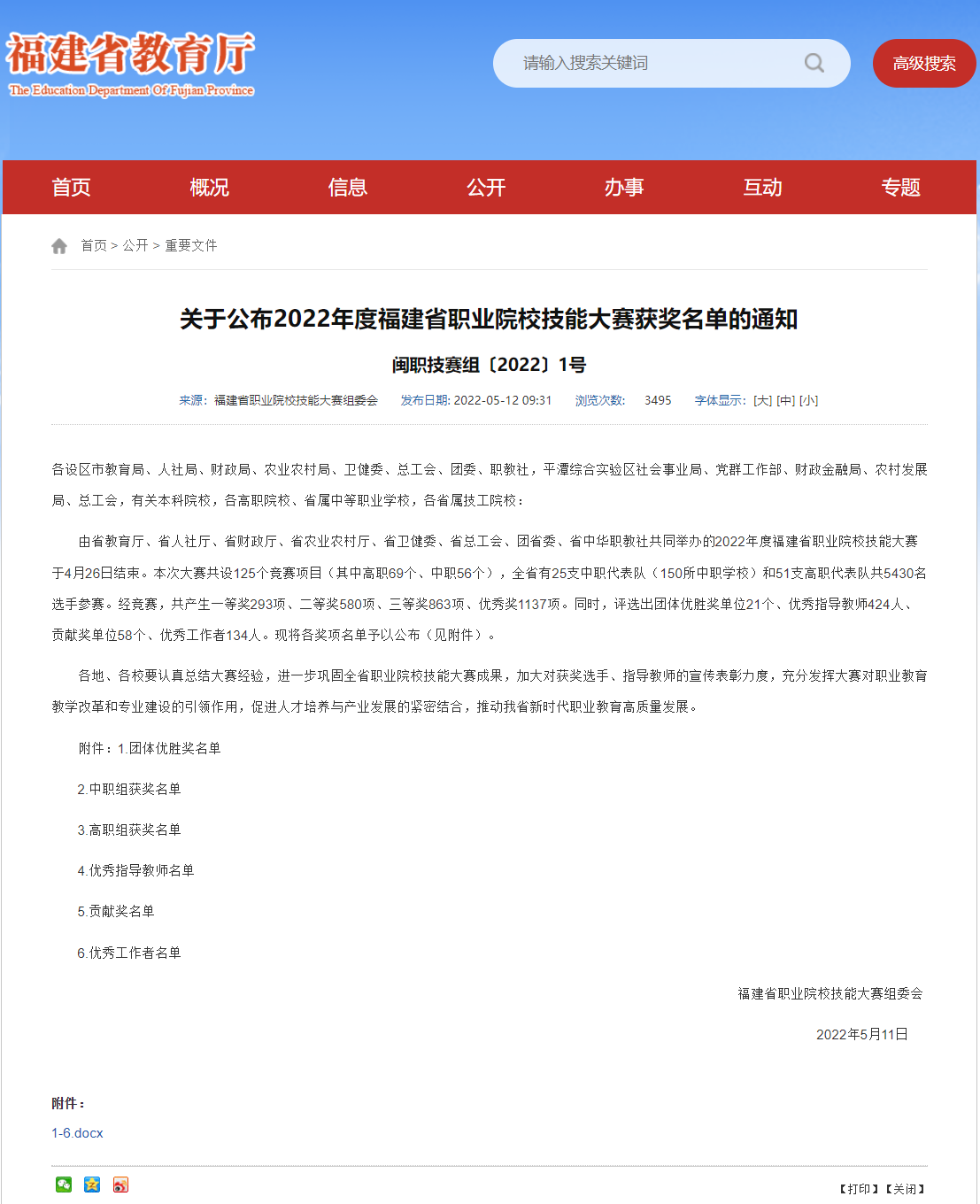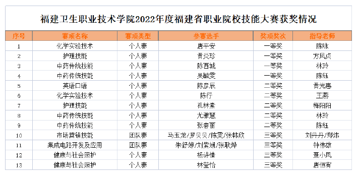 2022年度福建省職業(yè)院校技能大賽已落下帷幕。根據(jù)福建省職業(yè)院校技能大賽組委會(huì)《關(guān)于公布2022年度福建省職業(yè)院校技能大賽獲獎(jiǎng)名單的通知》,本次大賽中,我校選手奮勇拼搏,共取得一等獎(jiǎng)4項(xiàng),二等獎(jiǎng)5項(xiàng),三等獎(jiǎng)4項(xiàng)的好成績(jī)。