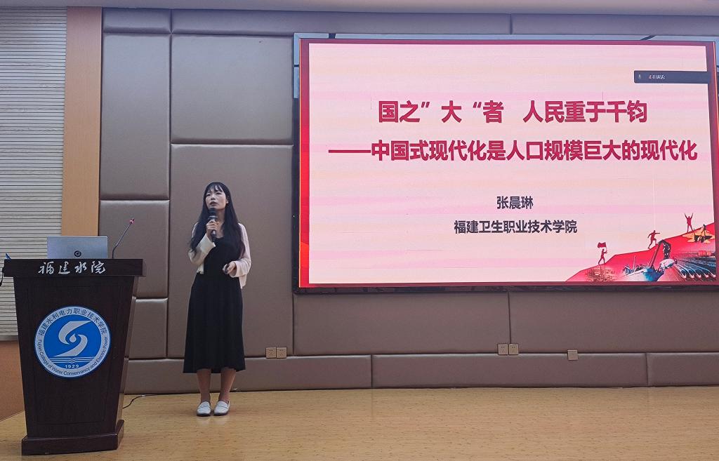 在示范課巡講環(huán)節(jié),張晨琳以《國之大者 人民重于千鈞——中國式現(xiàn)代化是人口規(guī)模巨大的現(xiàn)代化》為題,圍繞“立足國情:人口規(guī)模巨大的現(xiàn)代化”“發(fā)展要義:現(xiàn)代化的本質(zhì)是人的現(xiàn)代化”“賡續(xù)接力:繪就中國式現(xiàn)代化青春畫卷”三個方面梳理本講的內(nèi)在邏輯。張晨琳的教學展示思路清晰,教學設(shè)計富有特色,具體體現(xiàn)黨的二十大精神“三進”工作的推進,獲得評委專家和與會老師的一致好評。