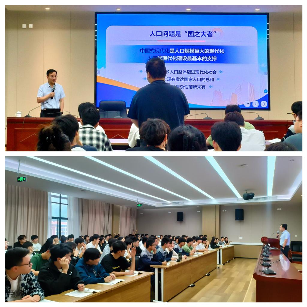 中國式現(xiàn)代化是人口規(guī)模巨大的現(xiàn)代化,人口是現(xiàn)代化建設(shè)最基本的支撐。徐偉從“人口發(fā)展面臨新形勢、人口問題全面辨證看、推進(jìn)人口高質(zhì)量發(fā)展”三個(gè)方面深入分析了我國 14 億多人口整體邁進(jìn)現(xiàn)代化社會面臨的人口壓力和人口結(jié)構(gòu)轉(zhuǎn)變挑戰(zhàn)。授課中,徐偉以生動(dòng)的案例、詳實(shí)的數(shù)據(jù)、深刻的對比,有效調(diào)動(dòng)同學(xué)們參與課堂的積極性,引導(dǎo)同學(xué)們?nèi)?、客觀、辯證地看待人口問題,樹立正確的人口觀,積極傳播人口發(fā)展的正能量。他指出,高校肩負(fù)全面提高人口綜合素質(zhì)的重大使命,學(xué)校要不斷深化教育教學(xué)改革,提高人才培養(yǎng)質(zhì)量,加強(qiáng)科技創(chuàng)新和社會服務(wù),為人口高質(zhì)量發(fā)展提供強(qiáng)大的智力支持和人才保障。同時(shí),要加強(qiáng)高校思想政治工作,引導(dǎo)學(xué)生將個(gè)人發(fā)展與國家人口發(fā)展戰(zhàn)略相結(jié)合,樹立為國家現(xiàn)代化建設(shè)貢獻(xiàn)力量的遠(yuǎn)大理想。