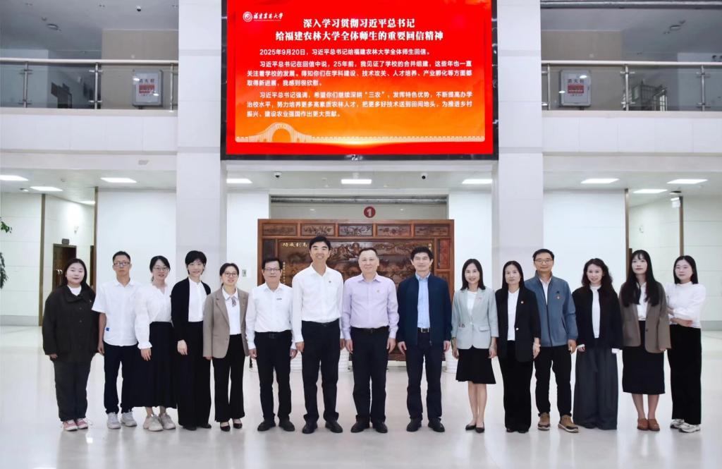 為深入學(xué)習(xí)貫徹習(xí)近平總書記給福建農(nóng)林大學(xué)全體師生的重要回信精神,緊密結(jié)合黨的二十屆四中全會(huì)關(guān)于發(fā)展新質(zhì)生產(chǎn)力、全面推進(jìn)強(qiáng)國建設(shè)的重要部署,促進(jìn)校際交流與合作,10月28日,校黨委書記曾武祈率馬克思主義學(xué)院第一黨支部赴福建農(nóng)林大學(xué)開展調(diào)研交流。福建農(nóng)林大學(xué)副校長林慶藩,黨政辦、宣傳部、馬克思主義學(xué)院等相關(guān)部門負(fù)責(zé)人參加調(diào)研。