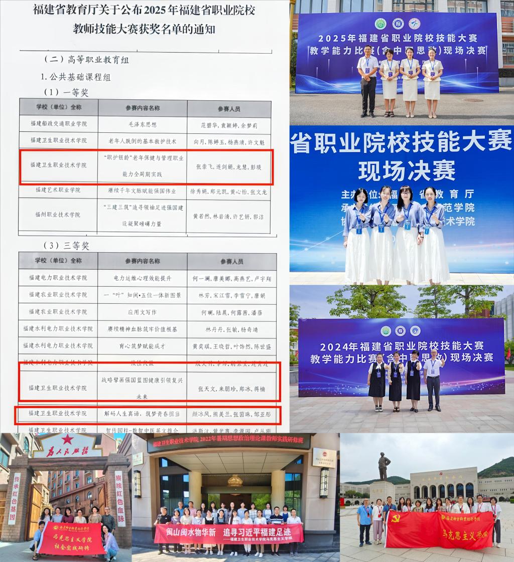以賽促教強(qiáng)師能,錘煉本領(lǐng)礪良匠。積極組織教師參加教學(xué)比賽,62人次獲省級(jí)及以上教學(xué)比賽獎(jiǎng)項(xiàng)。其中,獲福建省職業(yè)院校技能競(jìng)賽教師教學(xué)能力比賽一等獎(jiǎng)、二等獎(jiǎng)等共計(jì)33個(gè)獎(jiǎng)次;1個(gè)團(tuán)隊(duì)被福建省教育廳推薦參加第四屆全國(guó)高校思政課教學(xué)展示活動(dòng)。