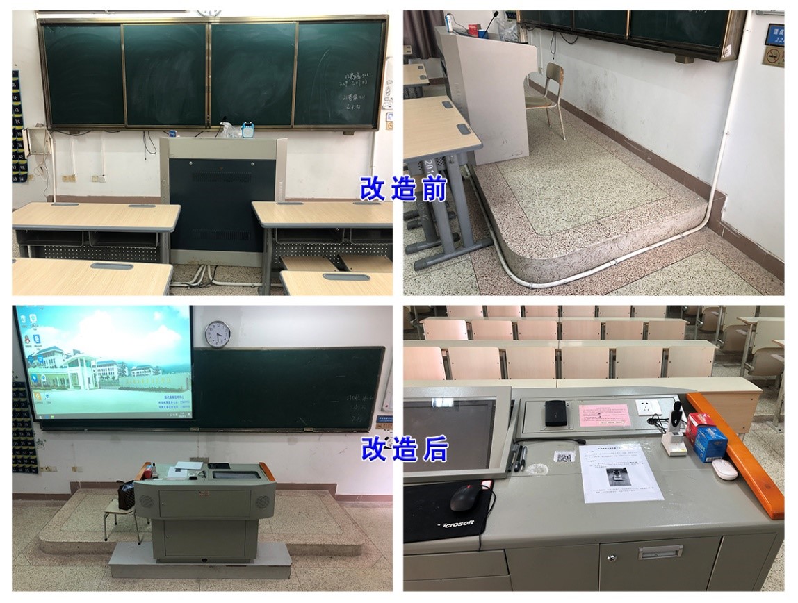 學(xué)校分批對教學(xué)樓教室進行線路改造,將教室內(nèi)裸露的線纜重新更換并開槽鋪設(shè)暗線,解決教室線路老舊、投影不清晰等問題;升級教室麥克風(fēng)等設(shè)備,提高擴聲質(zhì)量,營造優(yōu)質(zhì)教學(xué)環(huán)境。