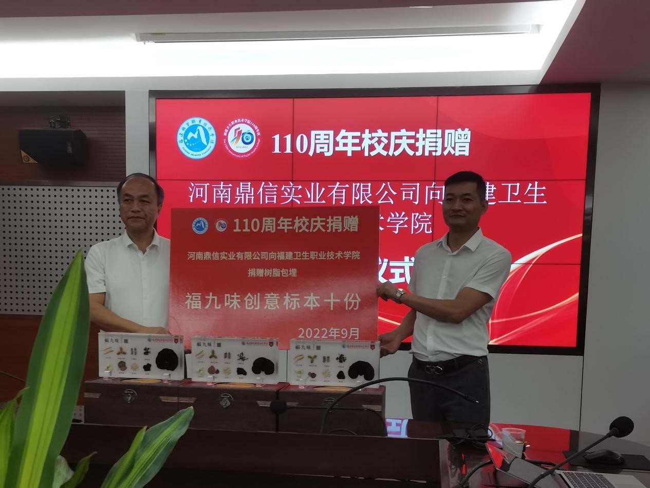 值此校慶到來之際,結(jié)合藥學(xué)院創(chuàng)意,河南鼎信實(shí)業(yè)有限公司對“福九味”進(jìn)行精心研發(fā),設(shè)計(jì)出福建衛(wèi)生職業(yè)技術(shù)學(xué)院專屬“福九味”包埋標(biāo)本并無償捐獻(xiàn)我校,助力學(xué)校藥學(xué)專業(yè)群建設(shè)和發(fā)展,讓師生感受到了社會各界對學(xué)校教育事業(yè)的關(guān)心與支持。