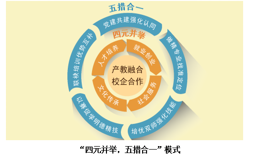 國(guó)家大力發(fā)展職業(yè)教育,職業(yè)教育是國(guó)民教育體系和人力資源開(kāi)發(fā)的重要組成部分,肩負(fù)著培養(yǎng)多樣化人才、傳承技術(shù)技能、促進(jìn)就業(yè)創(chuàng)業(yè)的重要職責(zé)。中辦、國(guó)辦在《關(guān)于推動(dòng)現(xiàn)代職業(yè)教育高質(zhì)量發(fā)展的意見(jiàn)》中提出“五個(gè)堅(jiān)持”:堅(jiān)持立德樹(shù)人、德技并修,推動(dòng)思想政治教育與技術(shù)技能培養(yǎng)融合統(tǒng)一;堅(jiān)持產(chǎn)教融合、校企合作,推動(dòng)形成產(chǎn)教良性互動(dòng)、校企優(yōu)勢(shì)互補(bǔ)的發(fā)展格局;堅(jiān)持面向市場(chǎng)、促進(jìn)就業(yè),推動(dòng)學(xué)校布局、專業(yè)設(shè)置、人才培養(yǎng)與市場(chǎng)需求相對(duì)接;堅(jiān)持面向?qū)嵺`、強(qiáng)化能力,讓更多青年憑借一技之長(zhǎng)實(shí)現(xiàn)人生價(jià)值;堅(jiān)持面向人人、因材施教,營(yíng)造人人努力成才、人人皆可成才、人人盡展其才的良好環(huán)境。