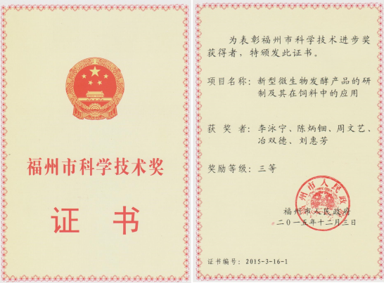 2.2015年獲福州市科技進步獎三等獎(排名第一)
