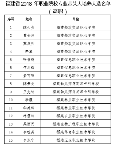 4.2018年入選“福建省職業(yè)院校專業(yè)帶頭人培養(yǎng)人選”