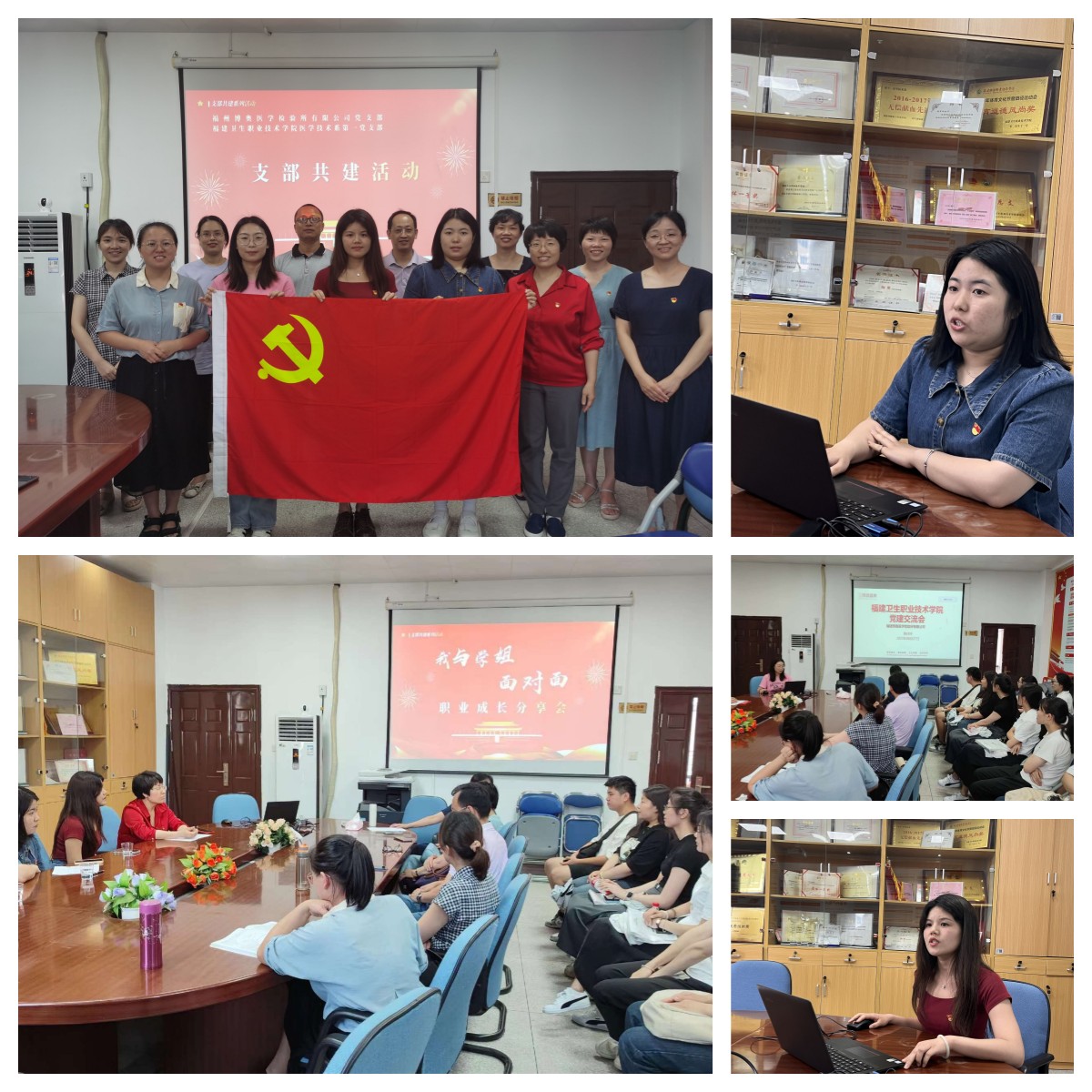 為進(jìn)一步推動(dòng)學(xué)習(xí)貫徹習(xí)近平新時(shí)代中國(guó)特色社會(huì)主義思想主題教育落到實(shí)處,2023年6月27日,醫(yī)學(xué)技術(shù)系第一黨支部與福州博奧醫(yī)學(xué)檢驗(yàn)所有限公司黨支部聯(lián)合開展“專業(yè)育人落實(shí)效,朋輩領(lǐng)航促就業(yè)”主題黨日活動(dòng)。醫(yī)學(xué)技術(shù)系黨總支書記柯瓊鶯、醫(yī)學(xué)技術(shù)系第一黨支部全體教師黨員、福州博奧醫(yī)學(xué)檢驗(yàn)所有限公司黨支部黨員代表與2020級(jí)醫(yī)學(xué)檢驗(yàn)技術(shù)專業(yè)預(yù)備黨員和入黨積極分子共聚一堂,共話職業(yè)成長(zhǎng)故事。