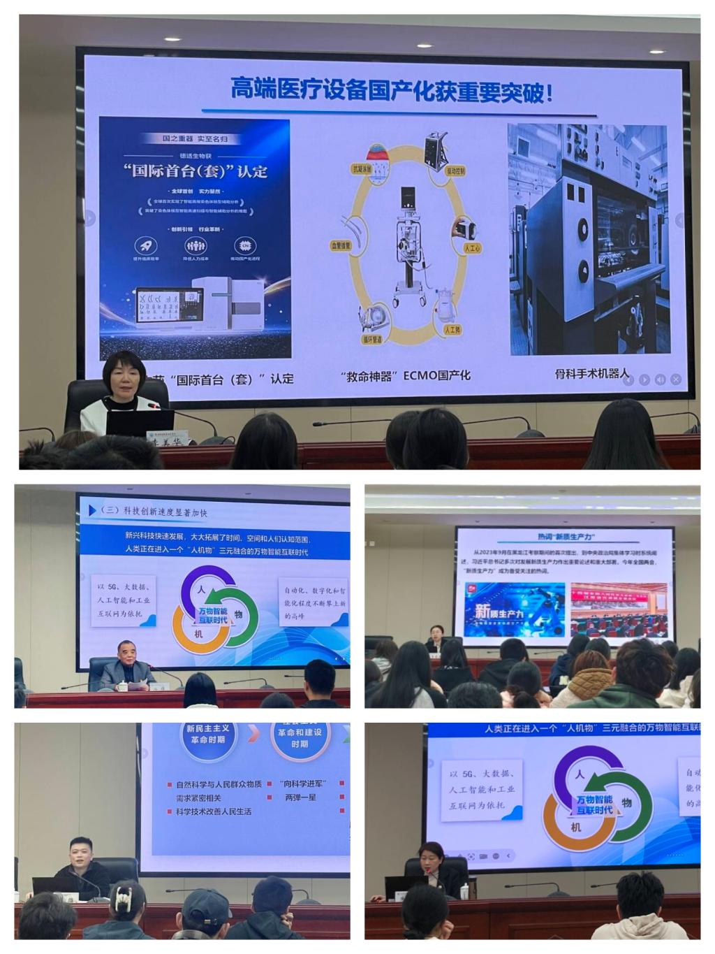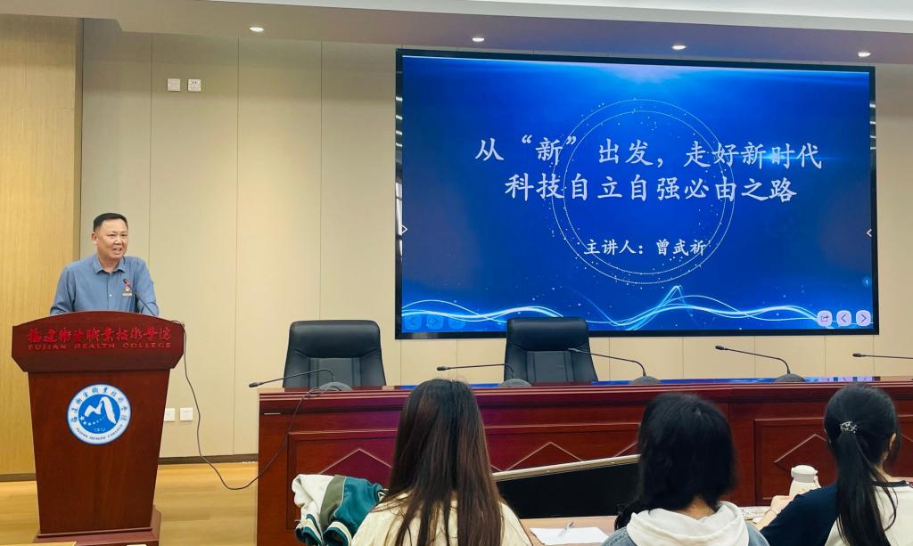 曾武祈以“從新出發(fā),走好新時代科技自立自強必由之路”為題,結合習近平總書記關于新質(zhì)生產(chǎn)力的重要論述,梳理了當今世界科技革命的全新特點、黨和國家面臨的機遇挑戰(zhàn)及突圍路徑,介紹了我國在載人航天、人工智能、醫(yī)療器械等前沿領域不斷涌現(xiàn)的創(chuàng)新成果。他指出,科技創(chuàng)新的前沿永無止境,科技創(chuàng)新的前景鼓舞人心。今天的中國,正向“新”而行、向“新”而進。我校師生應樹立開闊的國際視野,堅定信心、砥礪奮進,時不我待、只爭朝夕,勇當科技創(chuàng)新發(fā)展的生力軍,以新質(zhì)生產(chǎn)力為現(xiàn)代醫(yī)學創(chuàng)造更多可能。