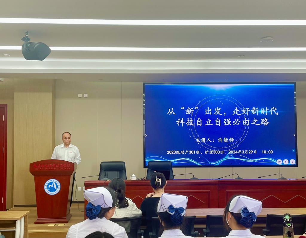 許能鋒遵循中華科技文明的發(fā)展脈絡展開講述,從先人在農(nóng)、醫(yī)、天、算等方面締造出聞名于世的科技成果,到屢次失之交臂的科技革命深刻改變了世界發(fā)展格局,再到新中國科技自立自強之路實現(xiàn)了獨立自主的蝶變,為師生們?yōu)閹砹艘惶眠壿媷乐?、理論深刻、視野開闊的形勢政策課,深刻闡述了“科技立則民族立,科技強則國家強”的歷史意蘊。他寄語師生,應當鑒古通今,觀照未來,篤行致遠,傳承我校優(yōu)良傳統(tǒng),活化利用現(xiàn)有資源,以科技創(chuàng)新助力健康中國建設。
